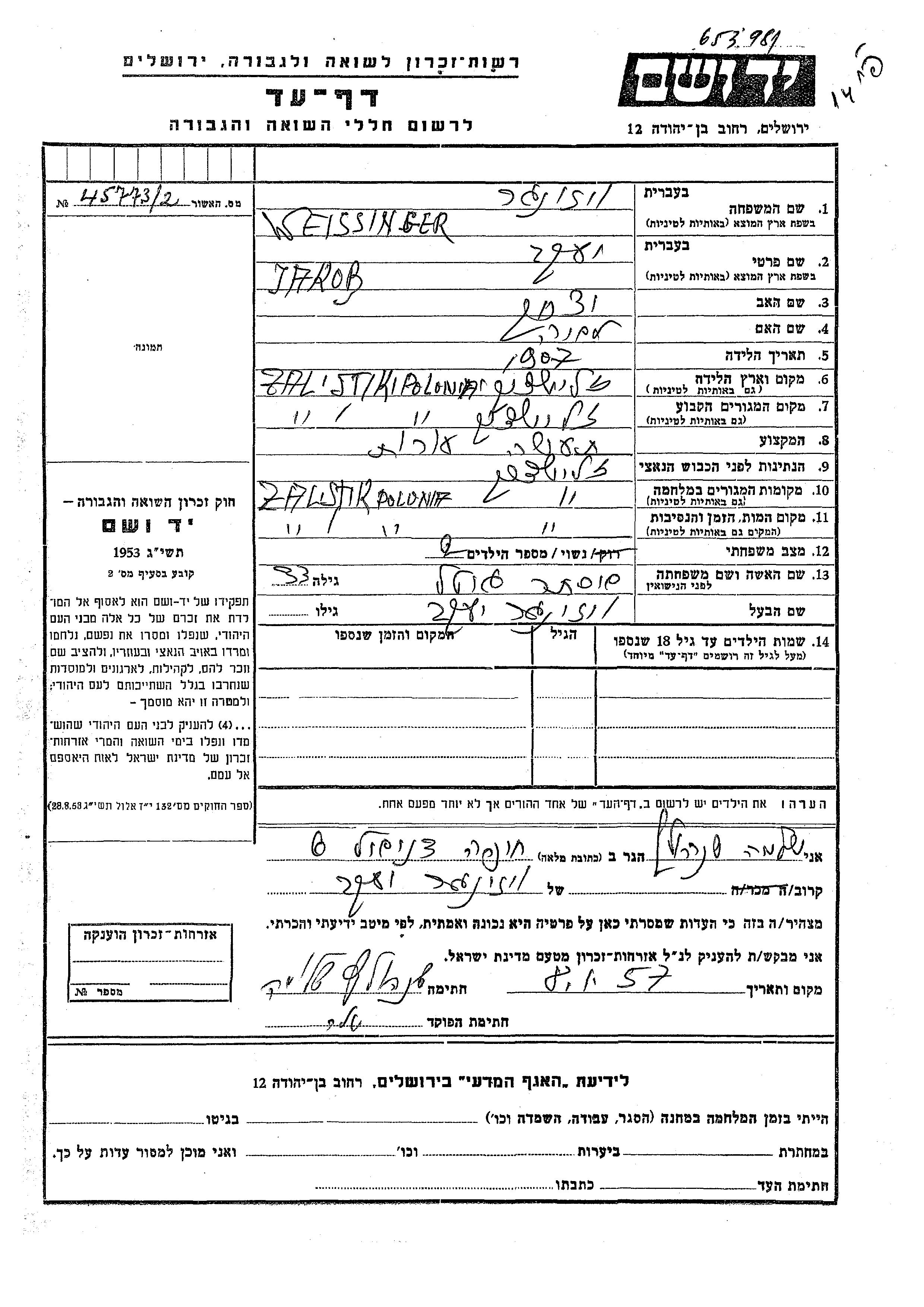 Yad Vashem - Pages of Testimony Names Memorial Collection