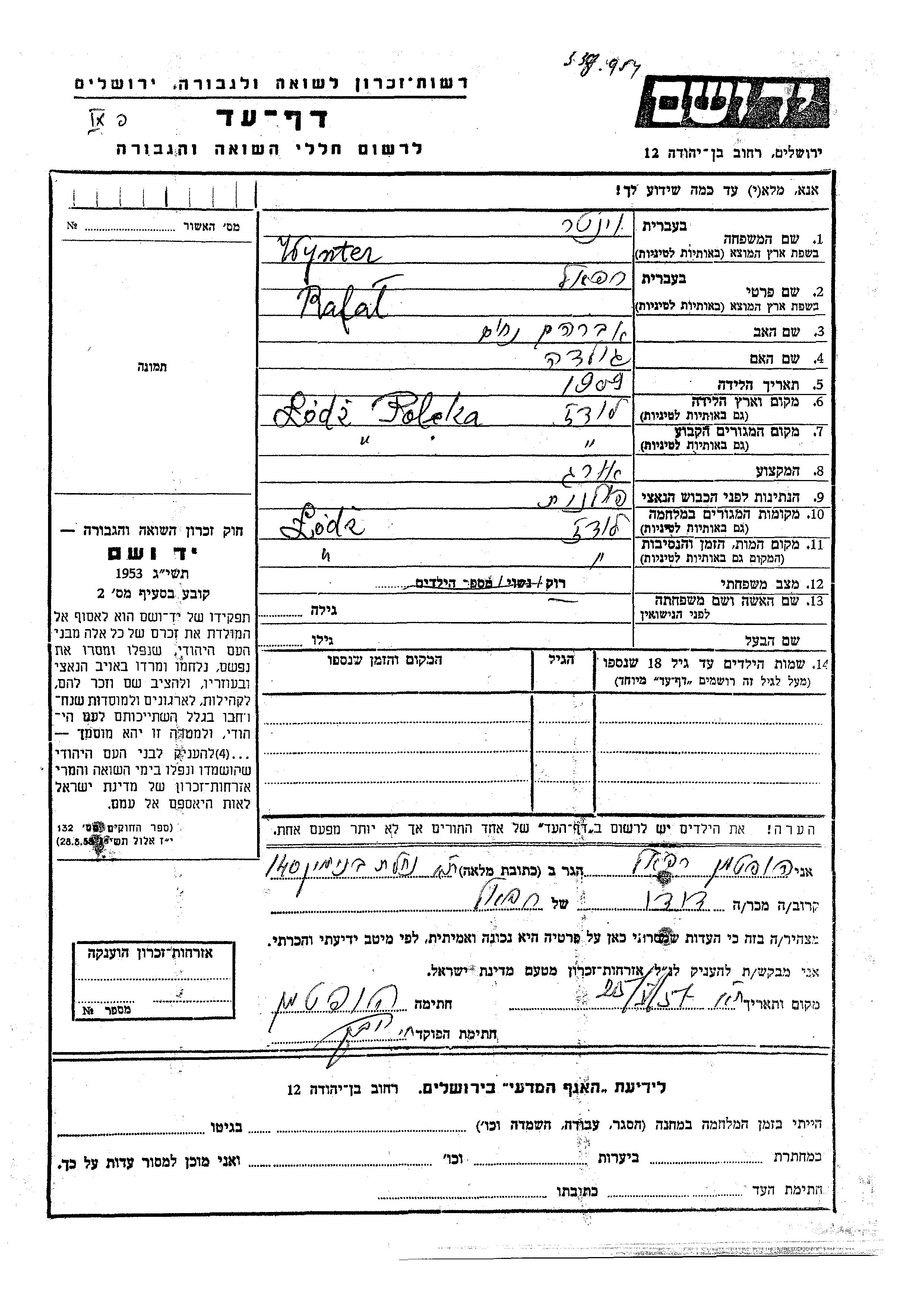 Yad Vashem - Pages of Testimony Names Memorial Collection
