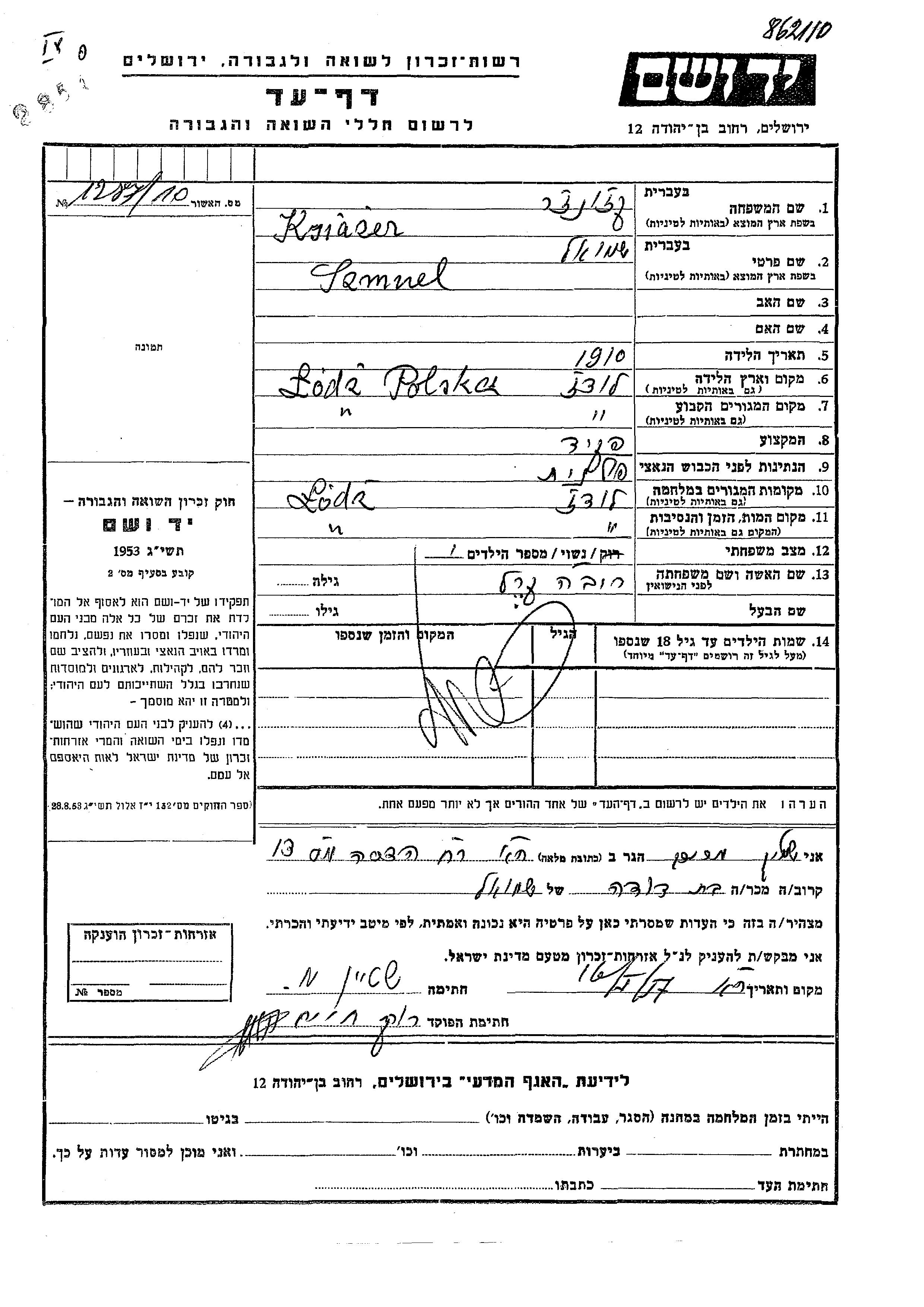 Yad Vashem - Pages of Testimony Names Memorial Collection