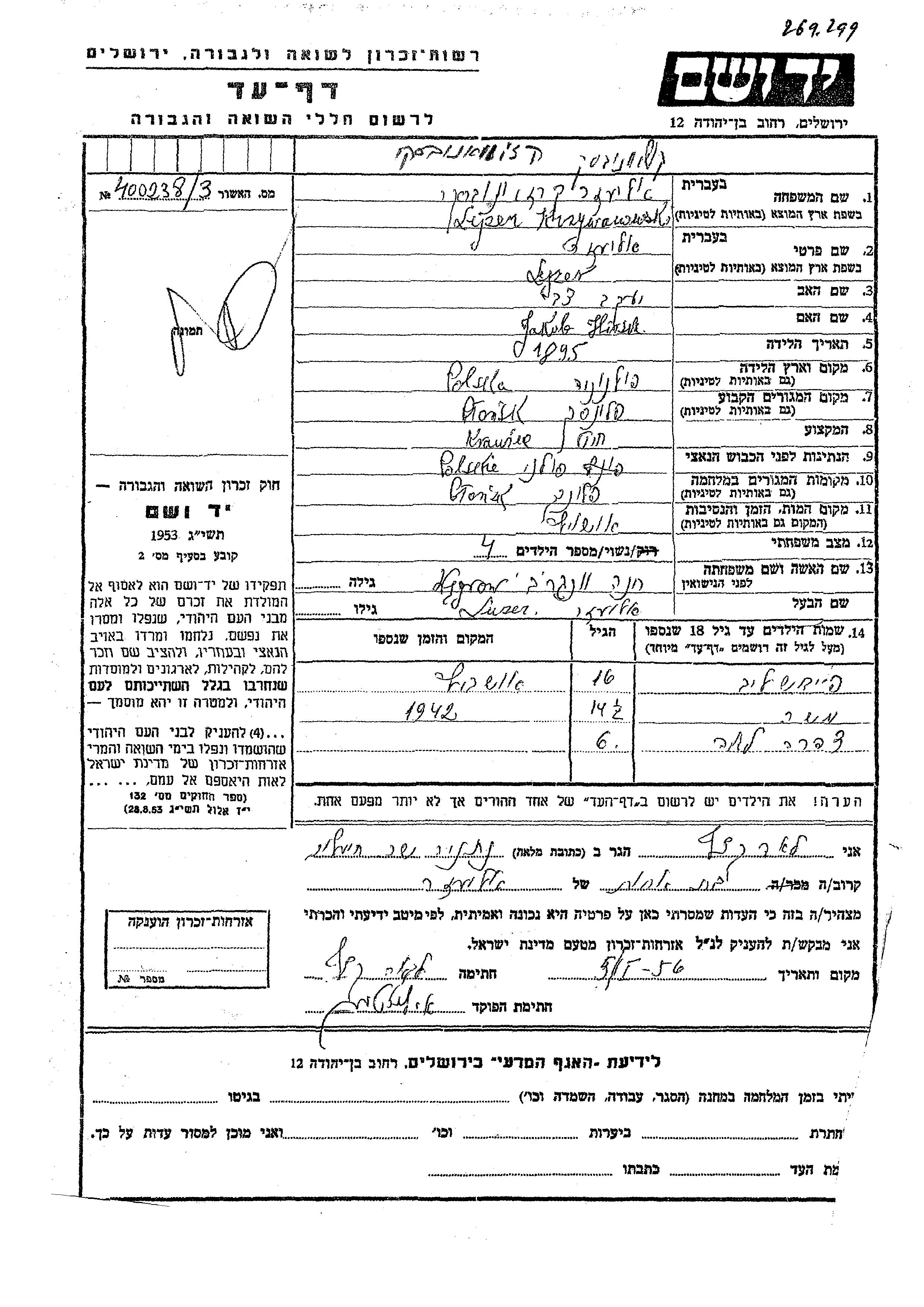 Yad Vashem - Pages of Testimony Names Memorial Collection
