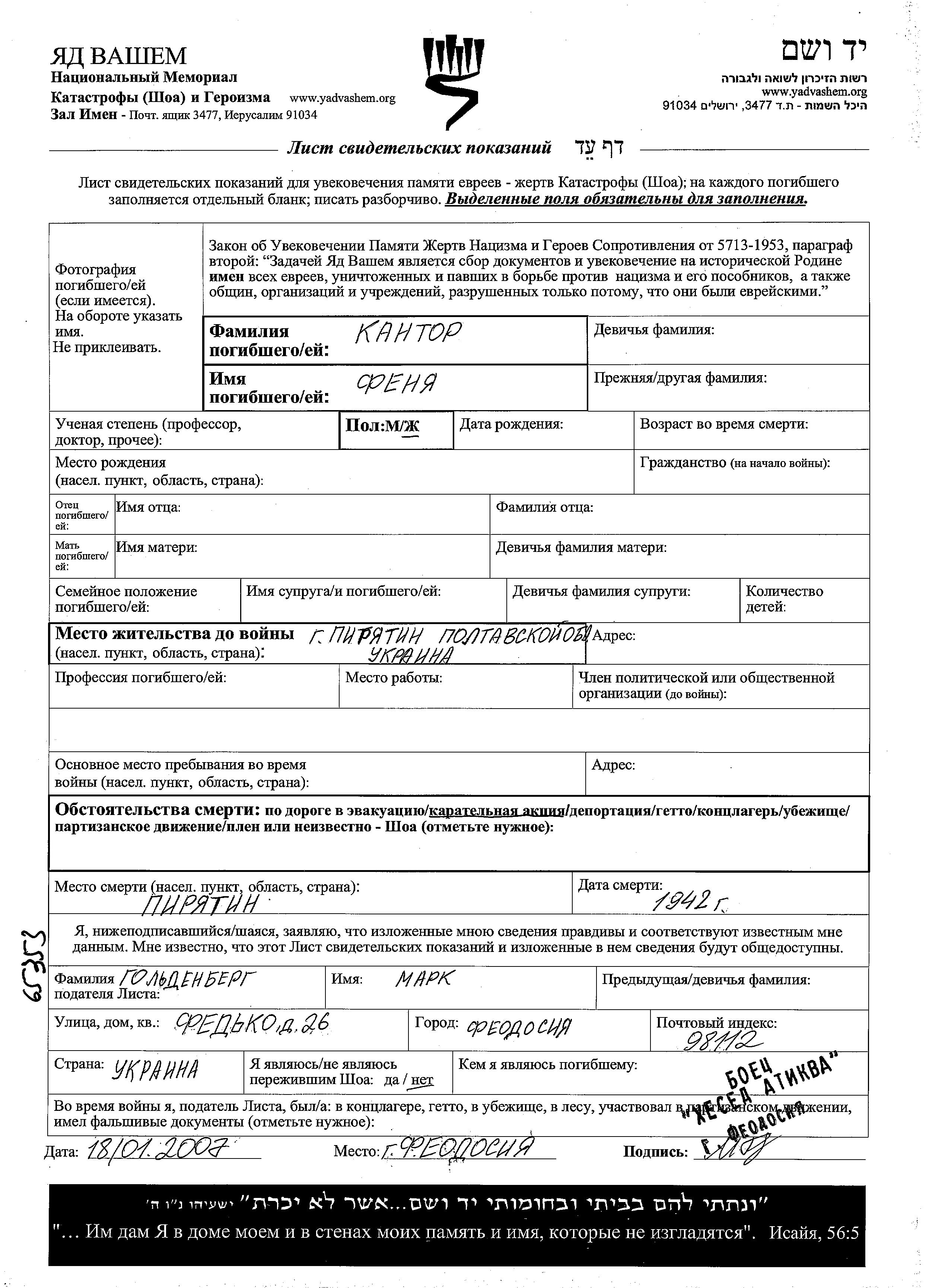 Yad Vashem - Pages of Testimony Names Memorial Collection
