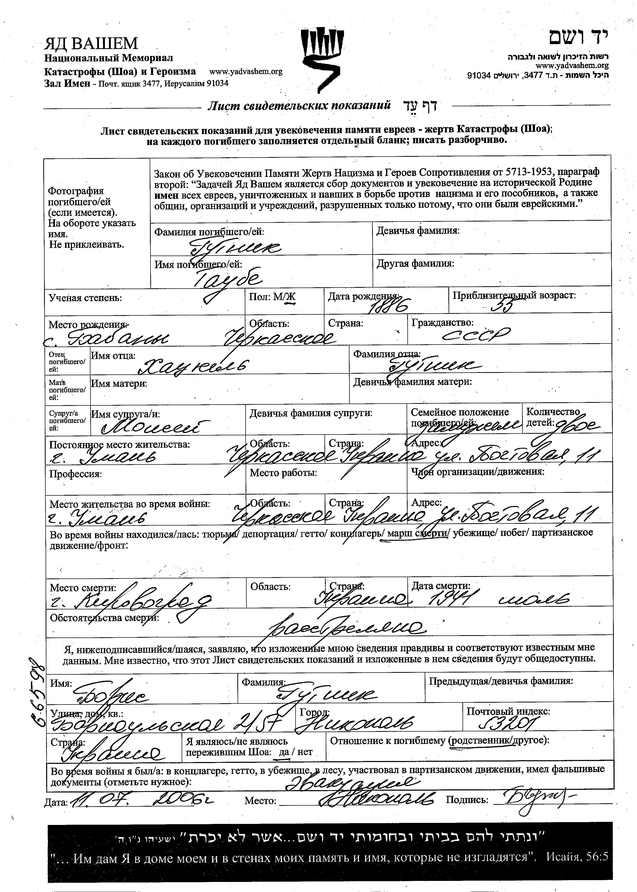 Yad Vashem - Pages of Testimony Names Memorial Collection