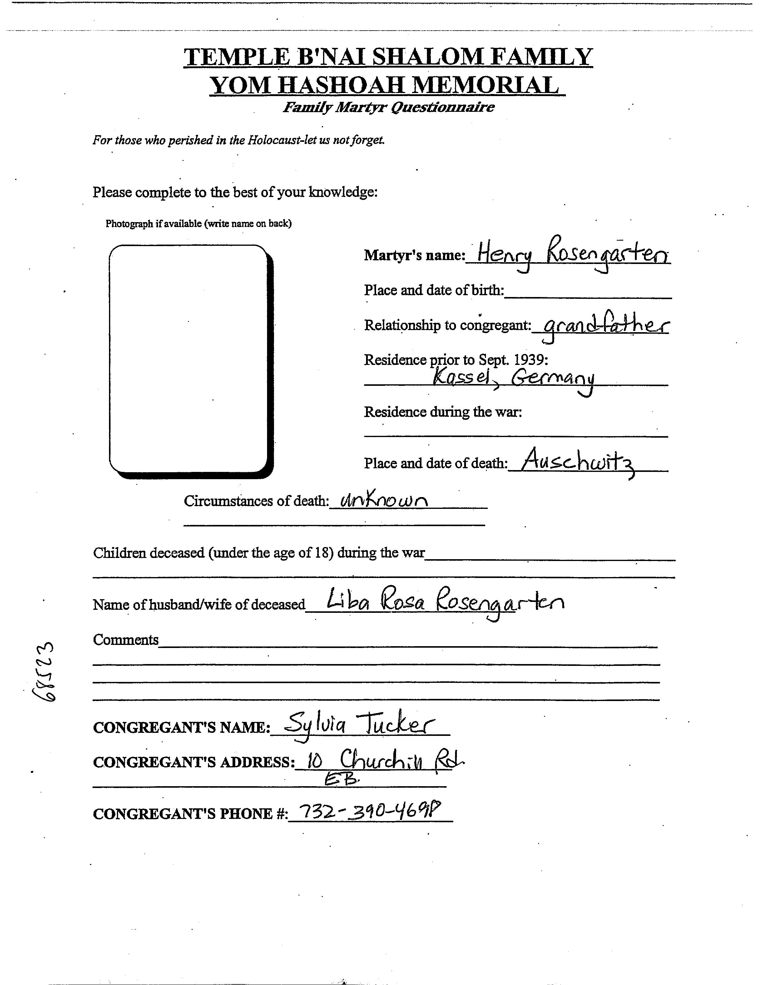 Henry Rosengarten. Il était Mariée à Liba Rosa. Avant la seconde guerre mondiale il vivait à Kassel, Allemagne.