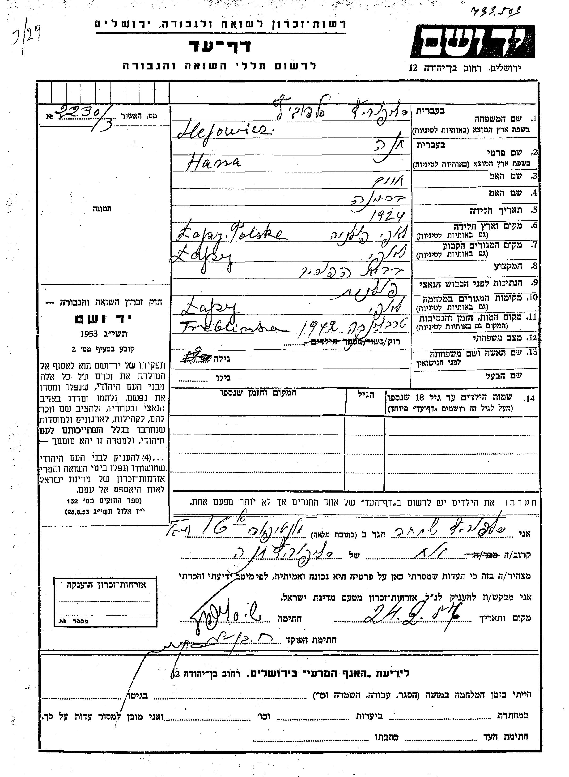 Yad Vashem - Pages of Testimony Names Memorial Collection