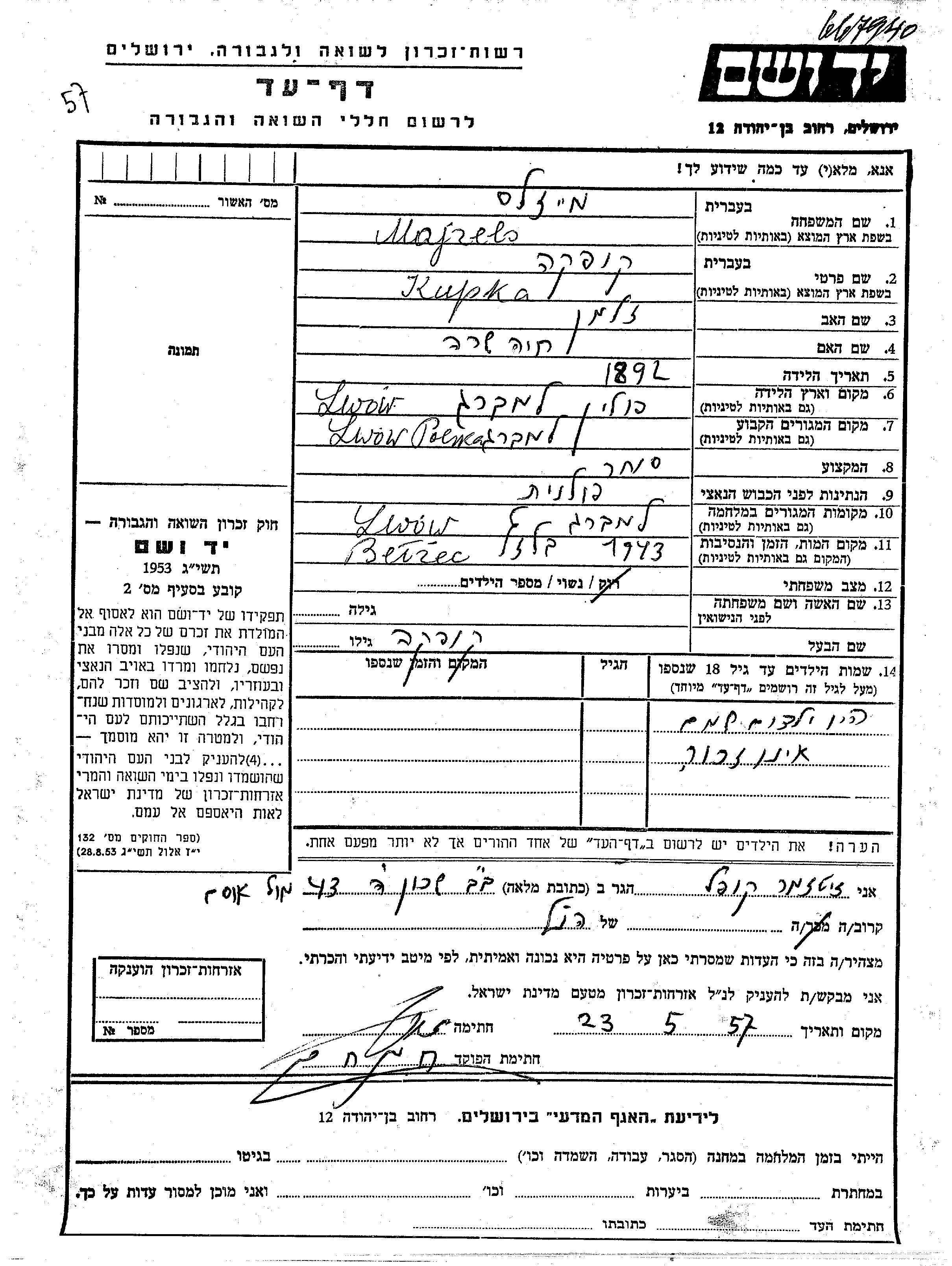 Yad Vashem - Pages of Testimony Names Memorial Collection