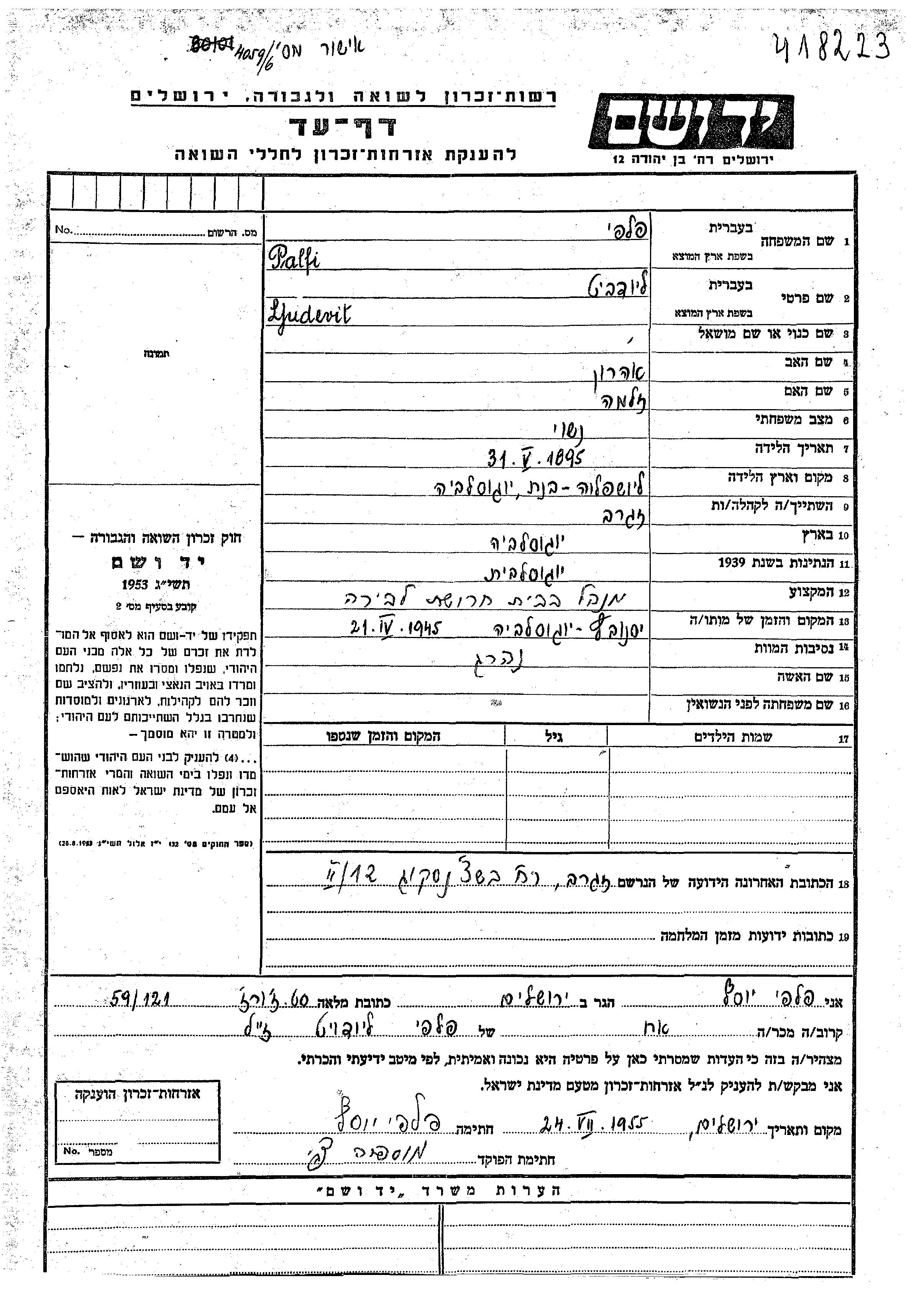 Yad Vashem - Pages of Testimony Names Memorial Collection