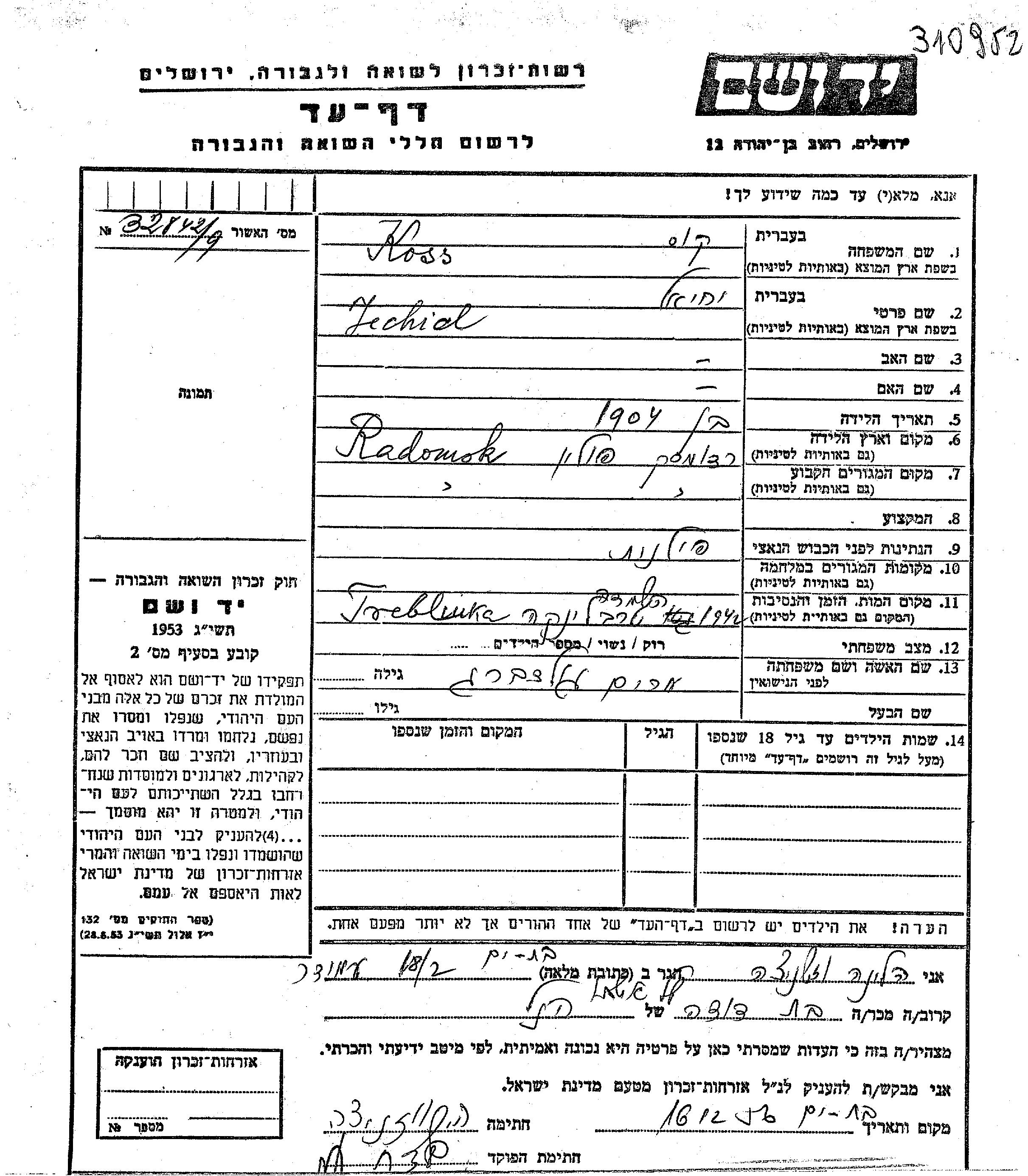 Yad Vashem - Pages of Testimony Names Memorial Collection