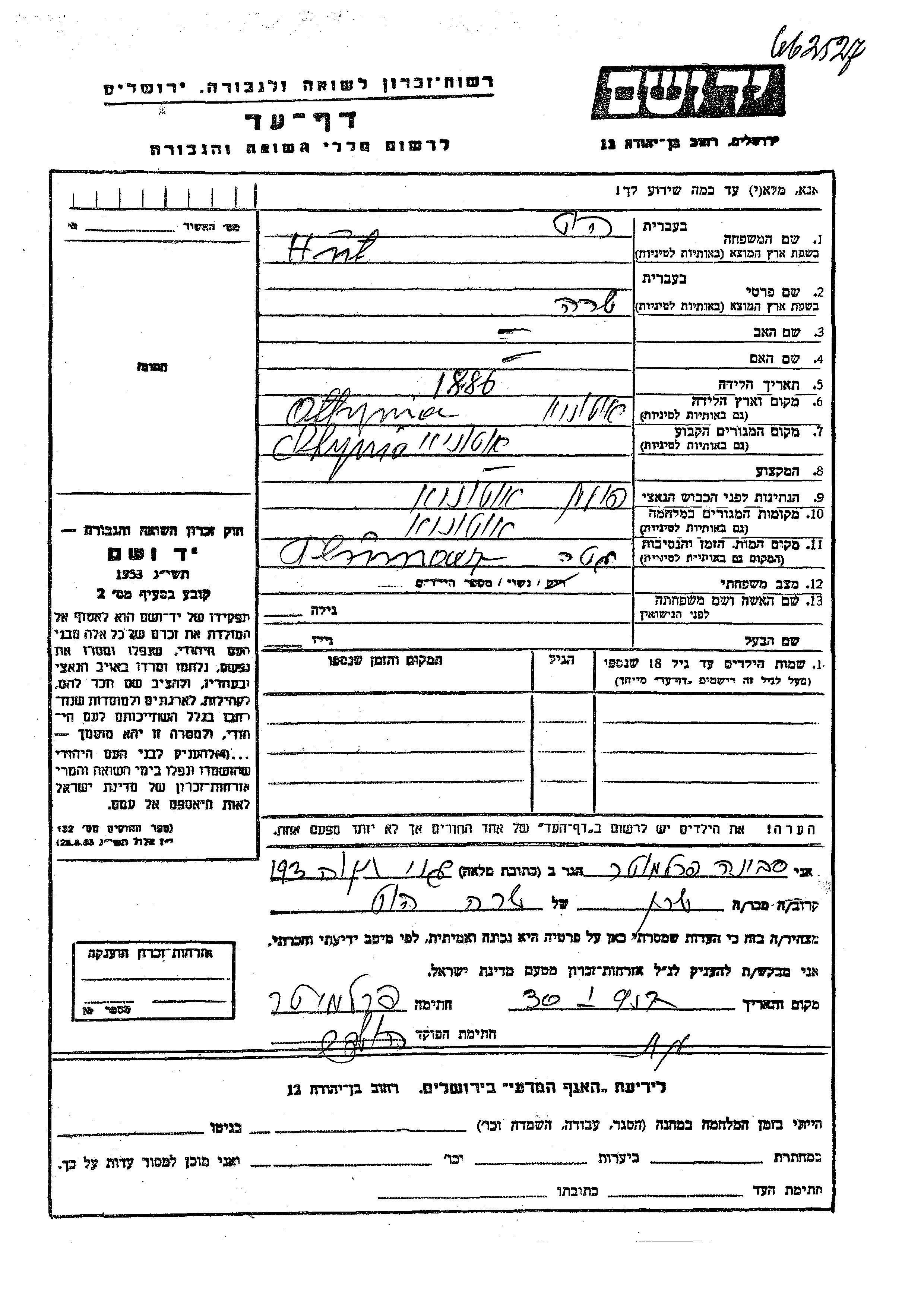 Yad Vashem - Pages of Testimony Names Memorial Collection