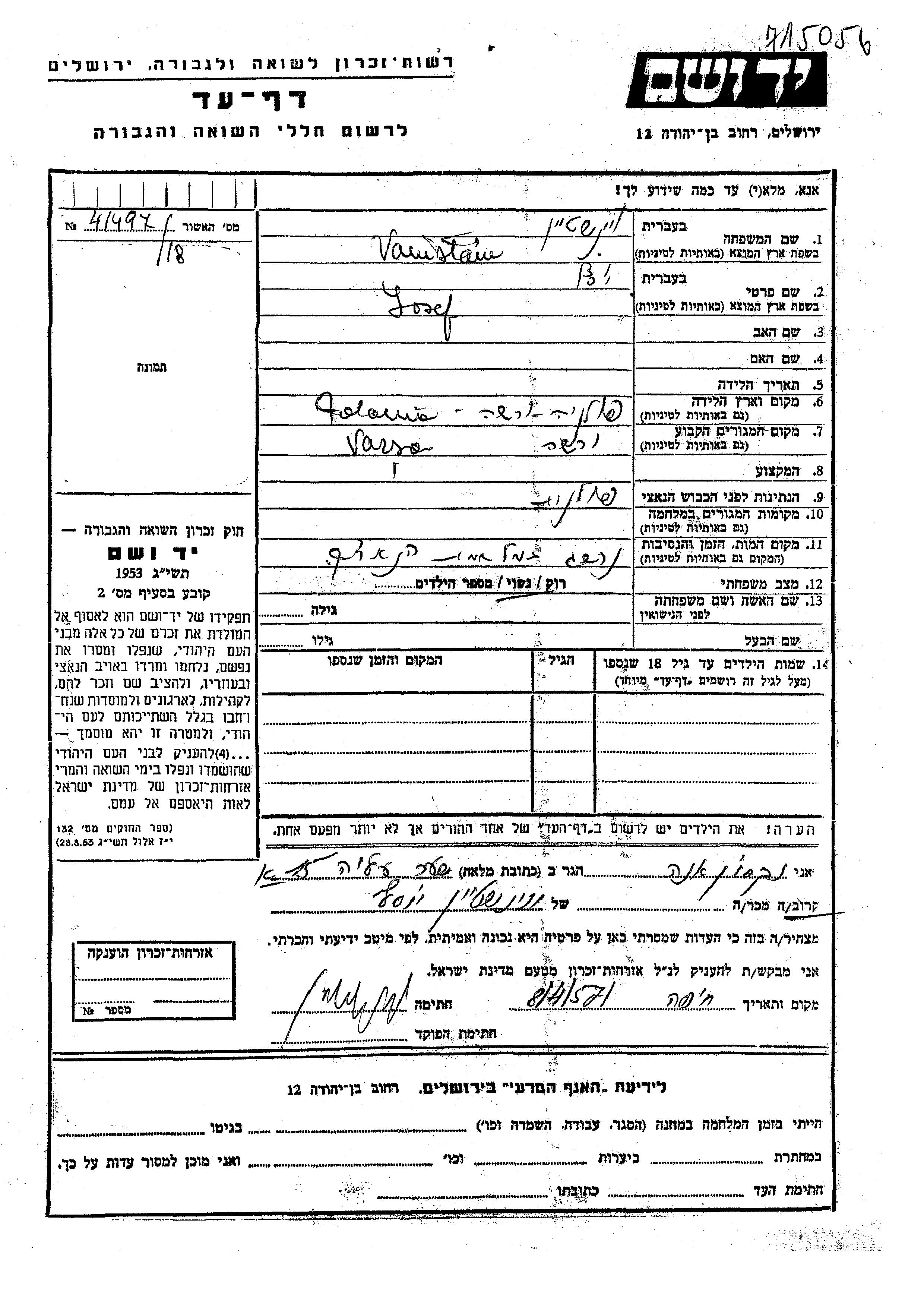 Yad Vashem - Pages of Testimony Names Memorial Collection