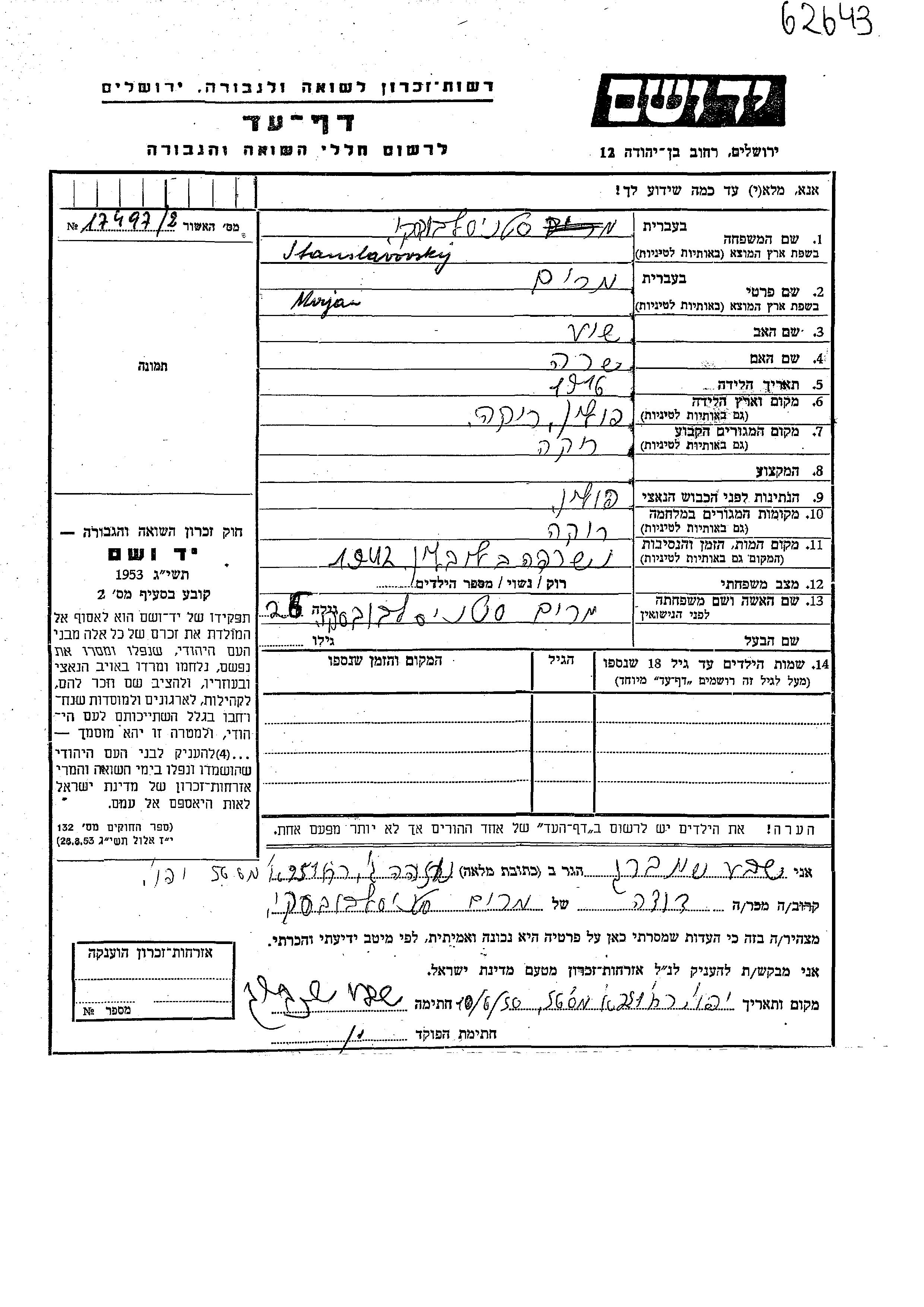 Stanislavoski Mirjam 1916 Rika, Pologne Feuille de témoignage