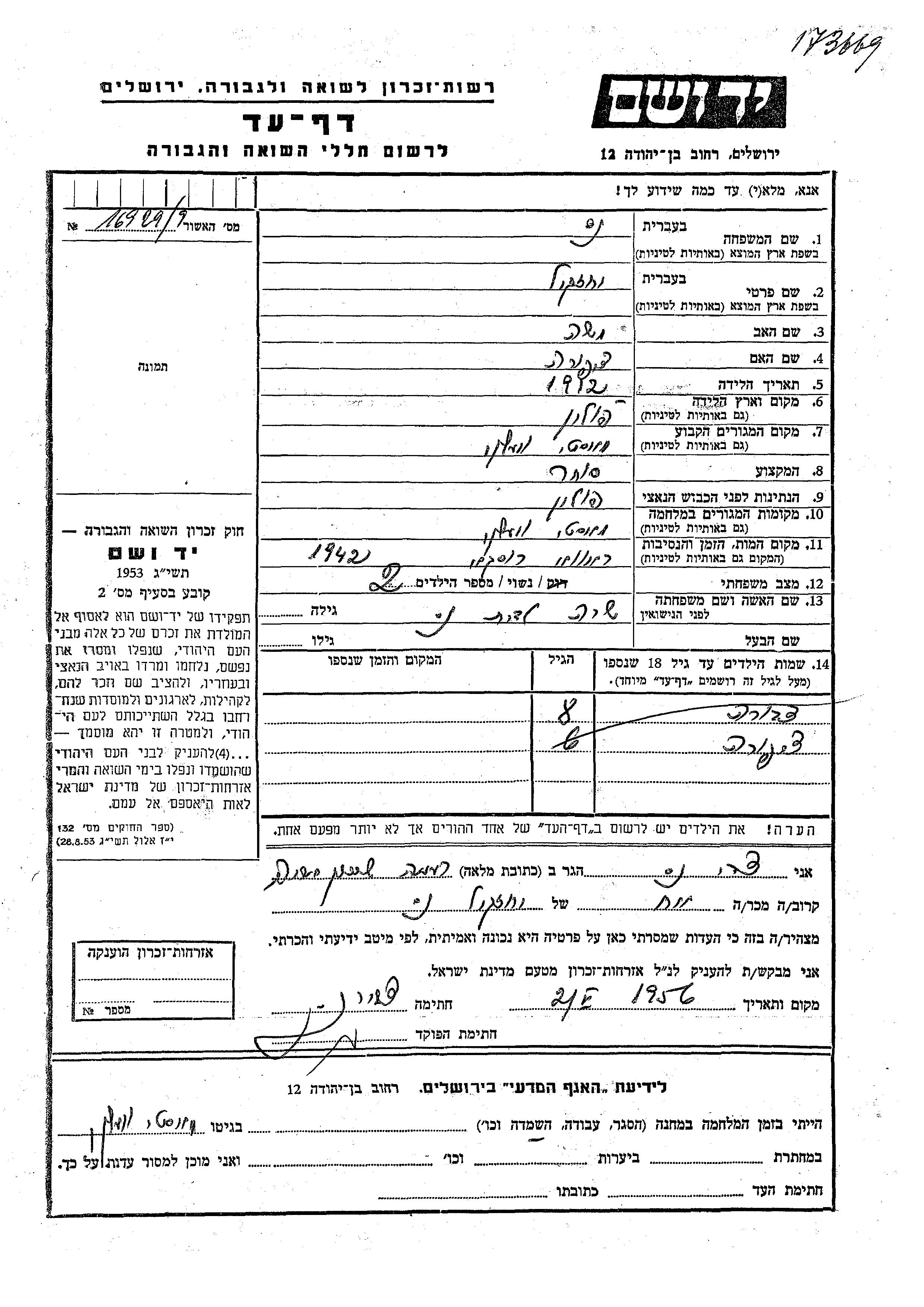 Yad Vashem - Pages of Testimony Names Memorial Collection