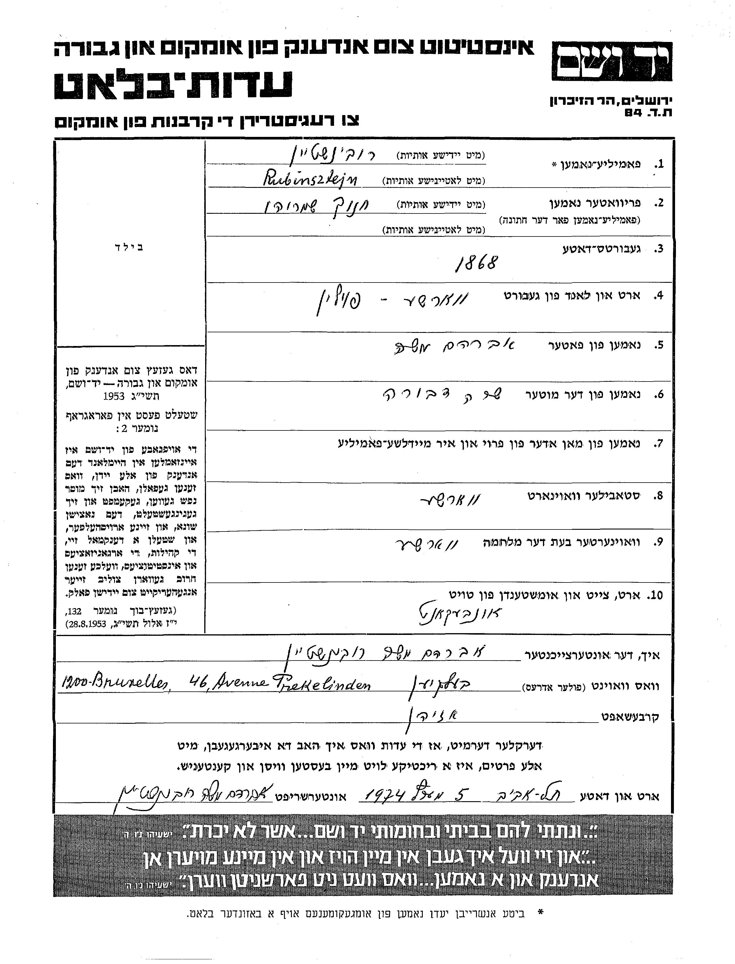Yad Vashem - Pages of Testimony Names Memorial Collection