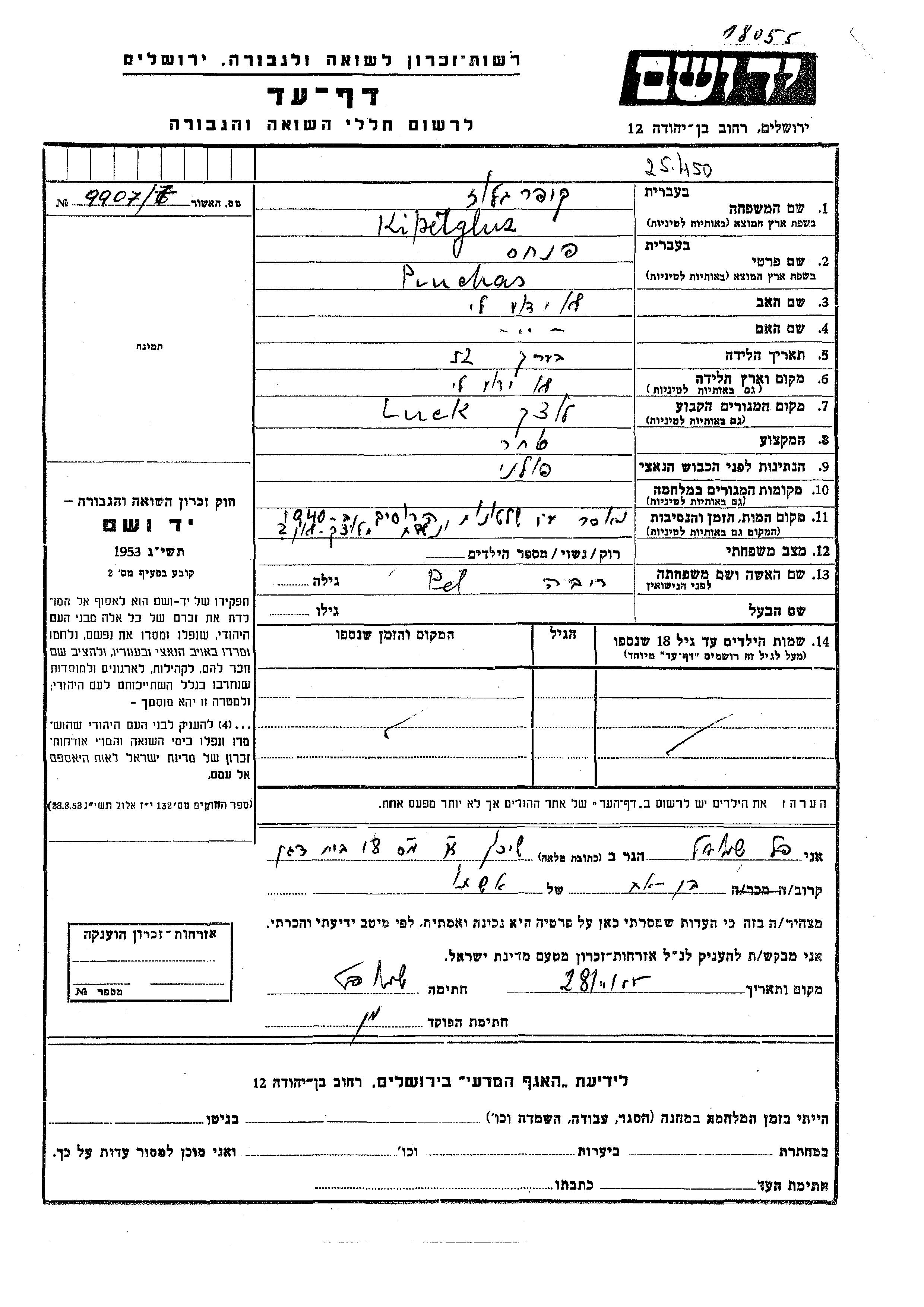 Yad Vashem - Pages of Testimony Names Memorial Collection