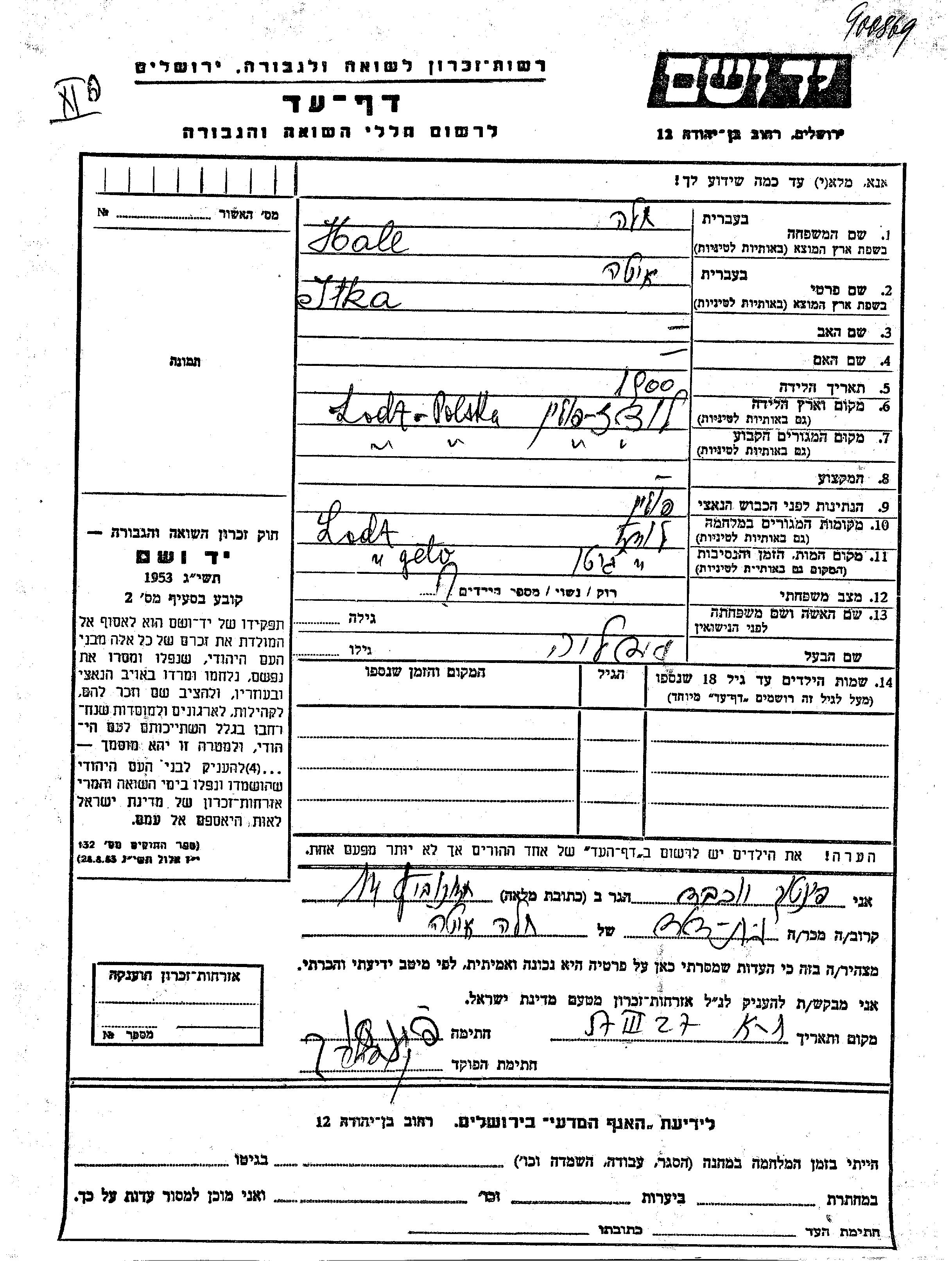 Yad Vashem - Pages of Testimony Names Memorial Collection