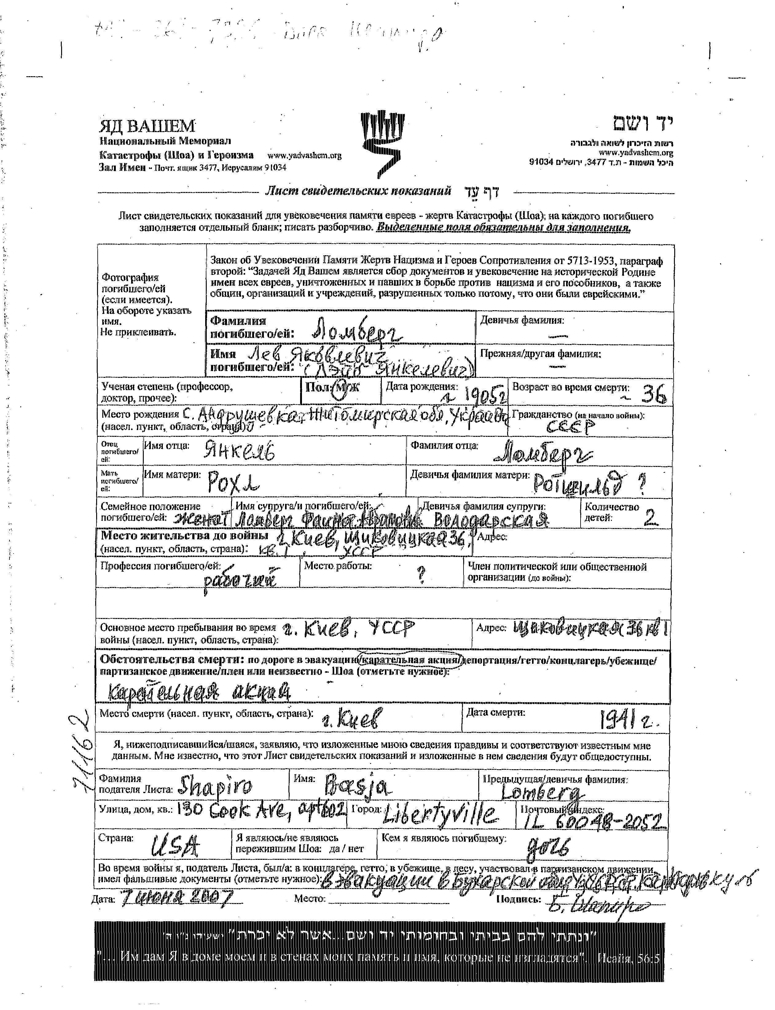 Au cours de la Shoah, les Juifs ont été assassinés de diverses façons : gazage, exécution par balle, immolation, noyade, enterrés vivants, épuisement par les travaux forcés, affamement, maladies et épidémies, privation de soins médicaux et de mesures de salubrité, etc. Certains Juifs ont mis fin à leur vie pour échapper à l'arrestation, aux persécutions ou aux souffrances permanentes et sans aucun espoir. Des dizaines de milliers de soldats juifs servant dans l’armée soviétique et capturés comme prisonniers de guerre furent sélectionnés comme juifs et assassinés. Beaucoup furent enregistrés comme «disparus au combat».