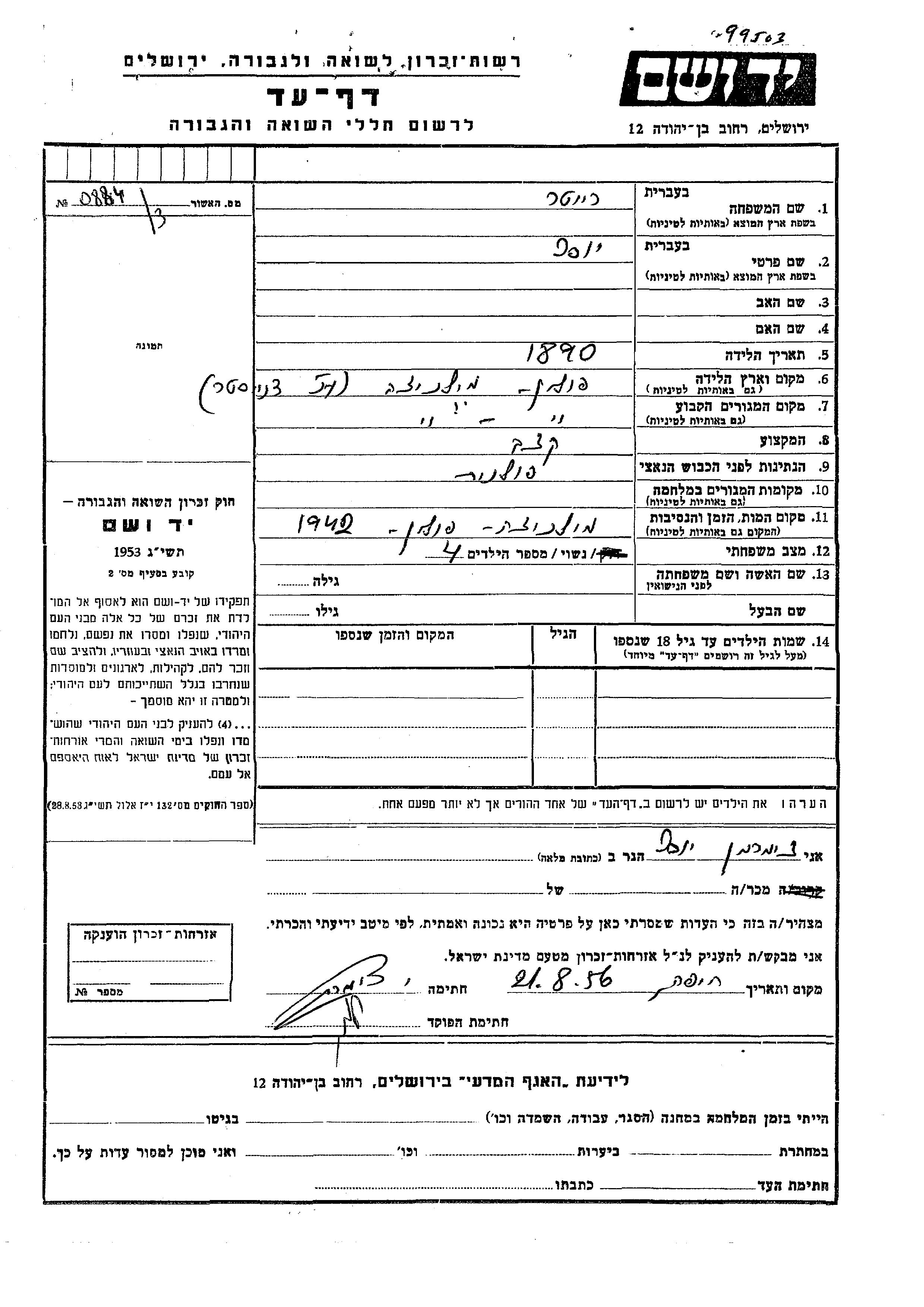 Yad Vashem - Pages of Testimony Names Memorial Collection