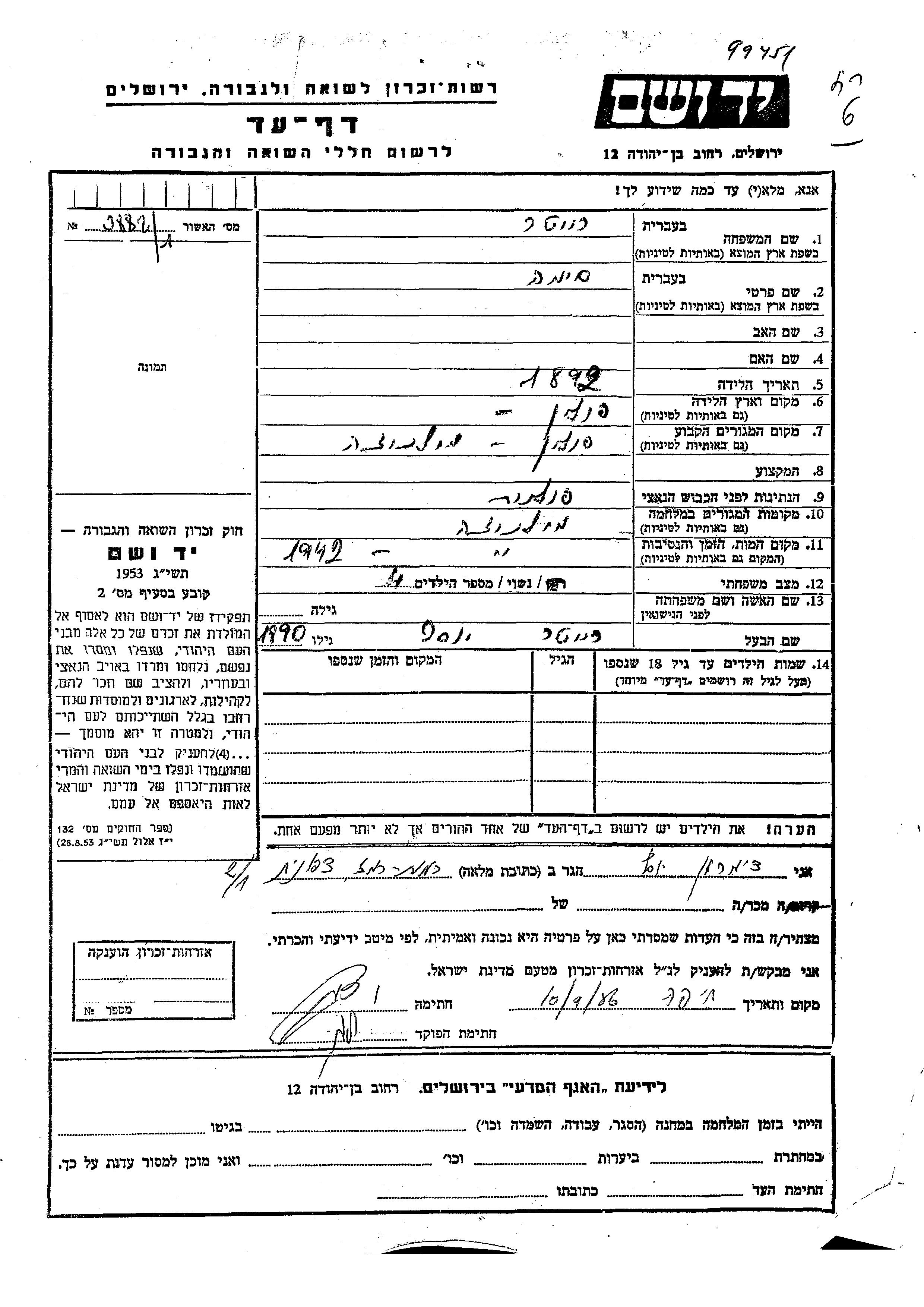 Yad Vashem - Pages of Testimony Names Memorial Collection