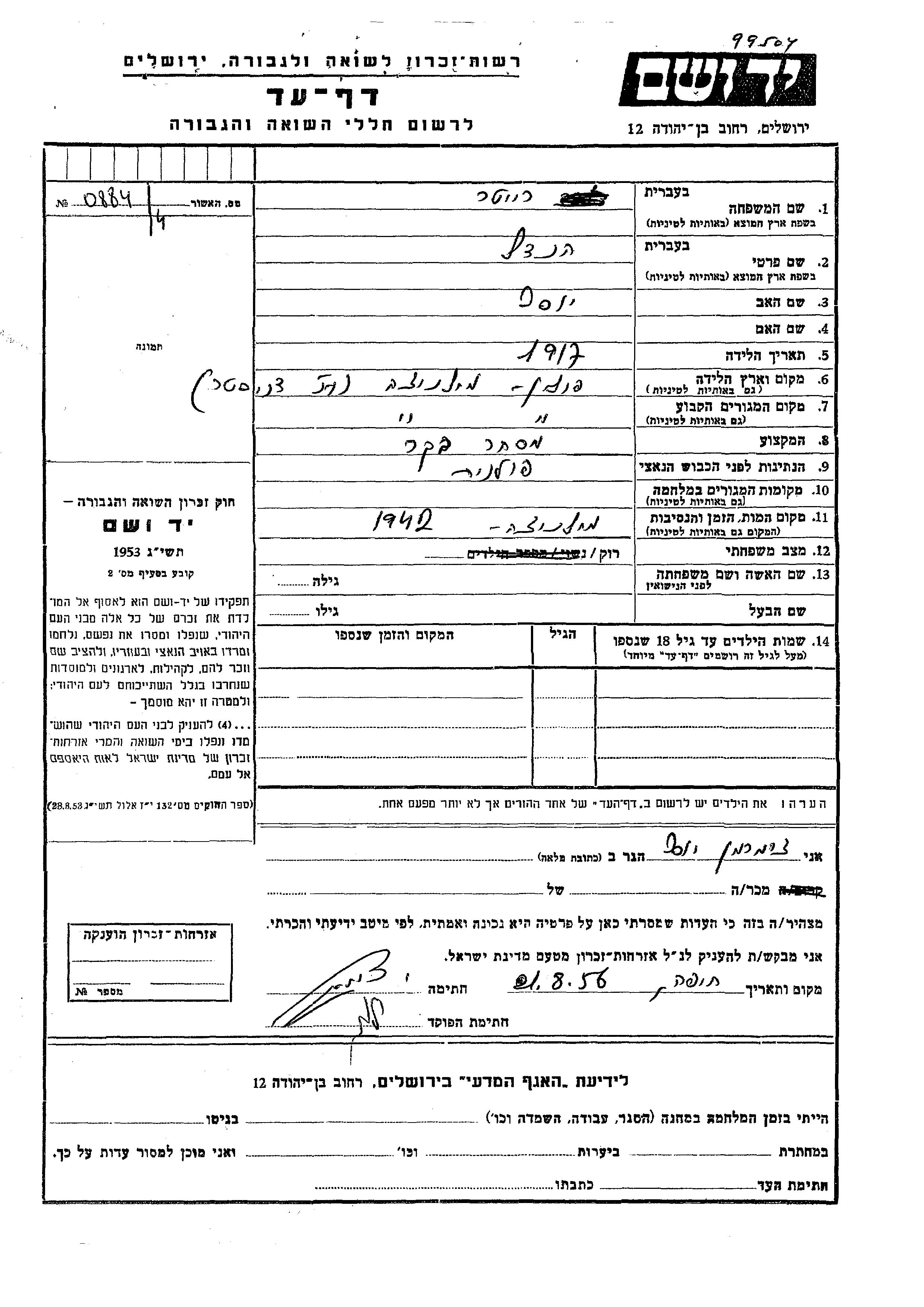 Yad Vashem - Pages of Testimony Names Memorial Collection