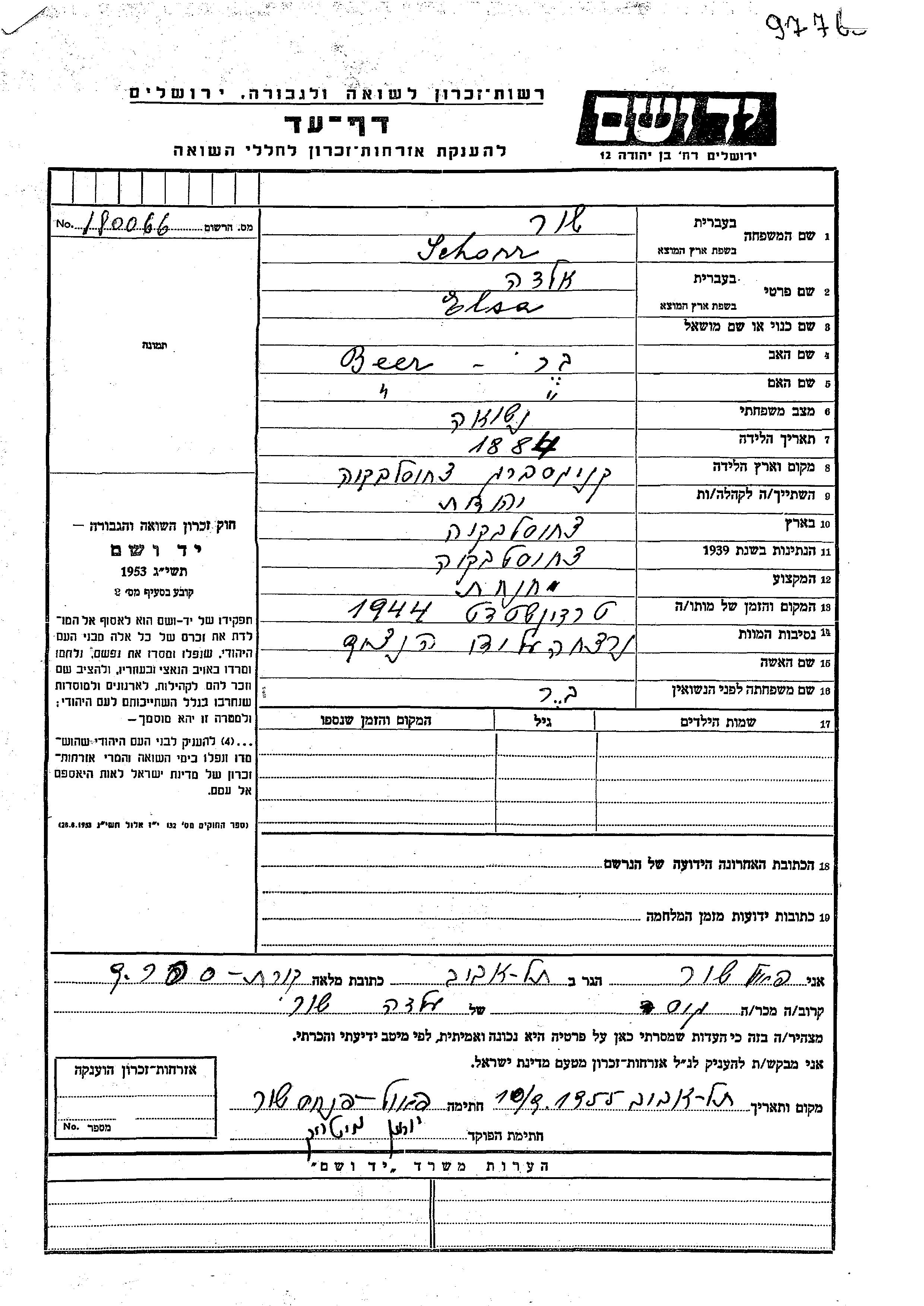 Yad Vashem - Pages of Testimony Names Memorial Collection