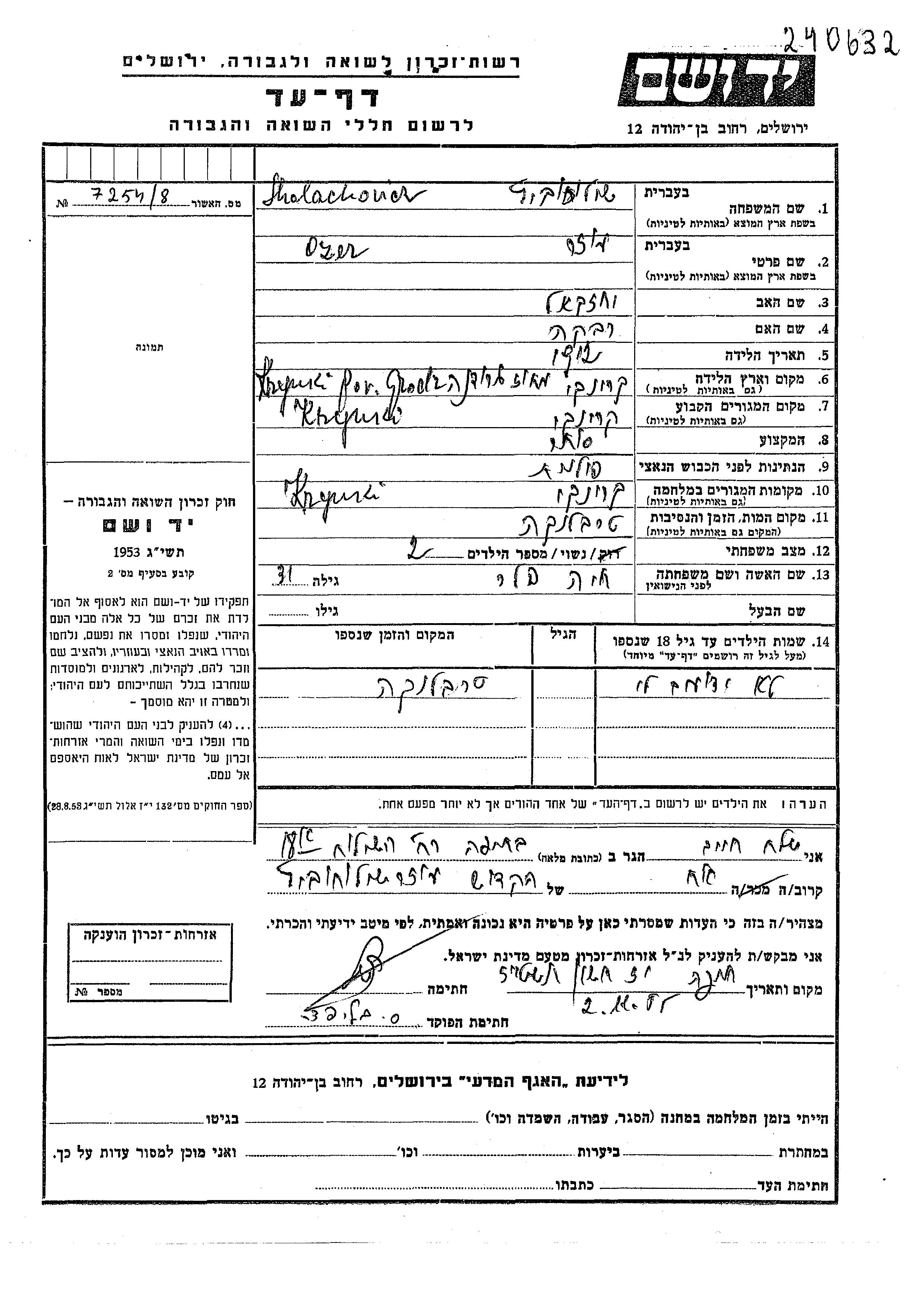 Yad Vashem - Pages of Testimony Names Memorial Collection