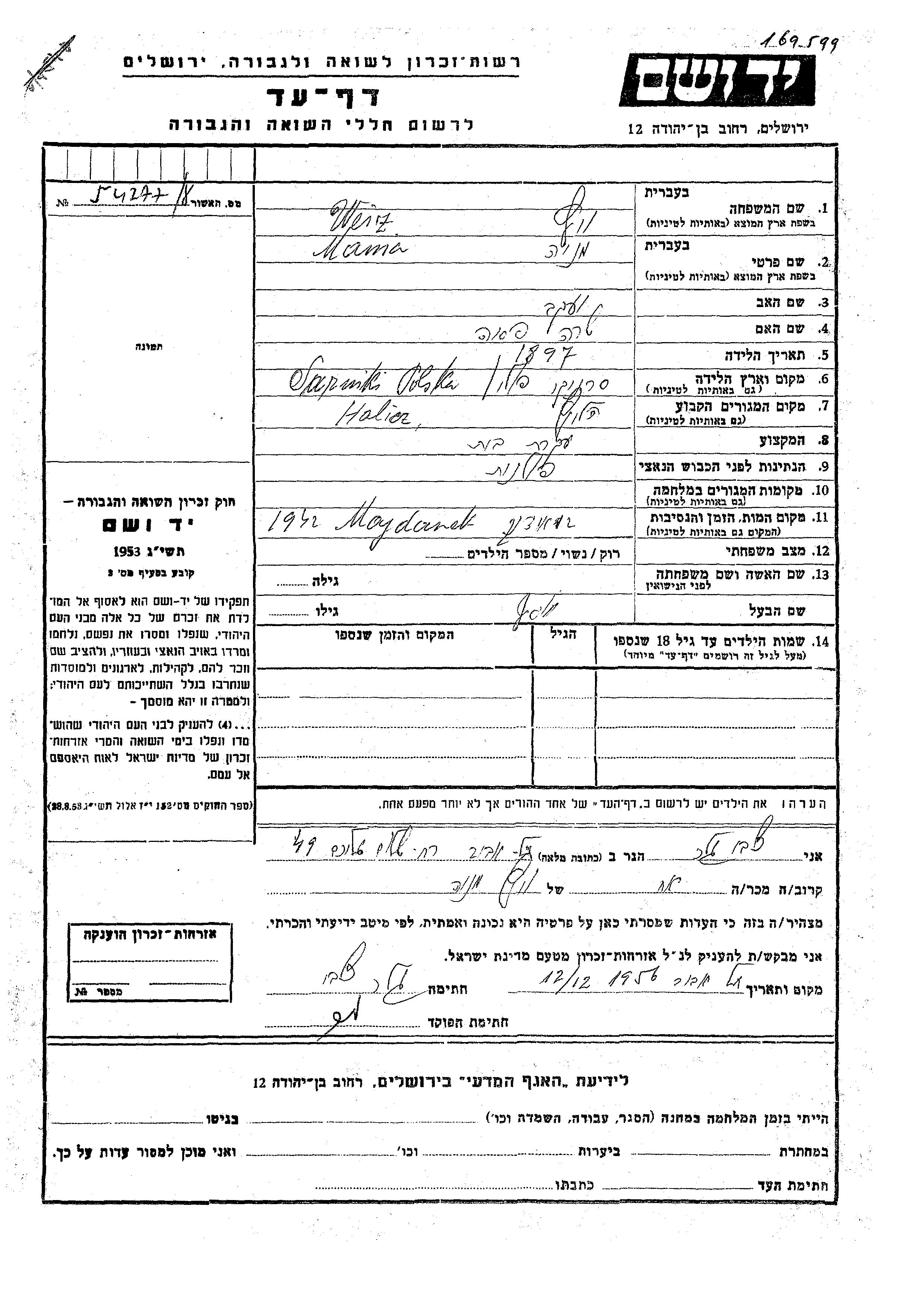 Yad Vashem - Pages of Testimony Names Memorial Collection