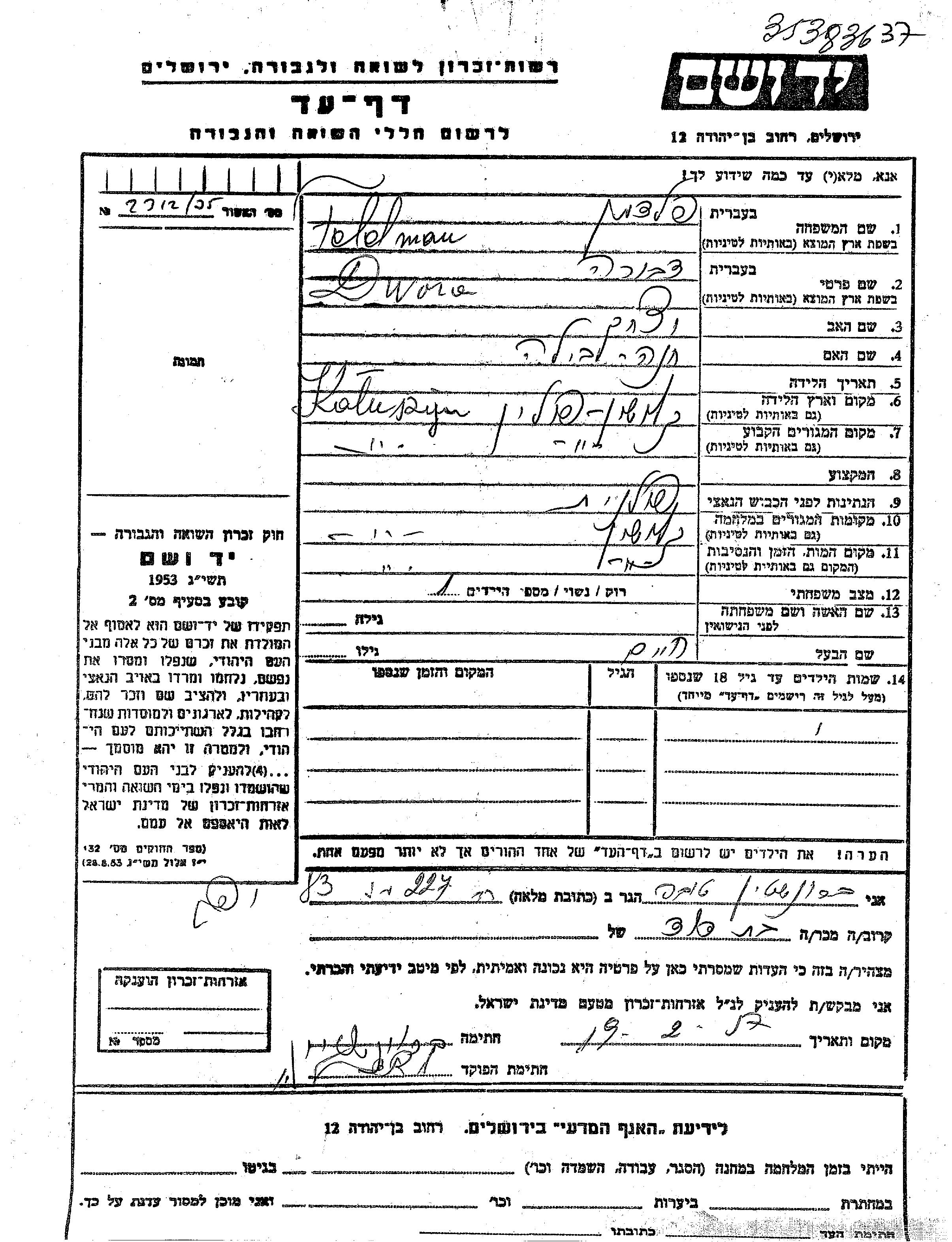 Yad Vashem - Pages of Testimony Names Memorial Collection