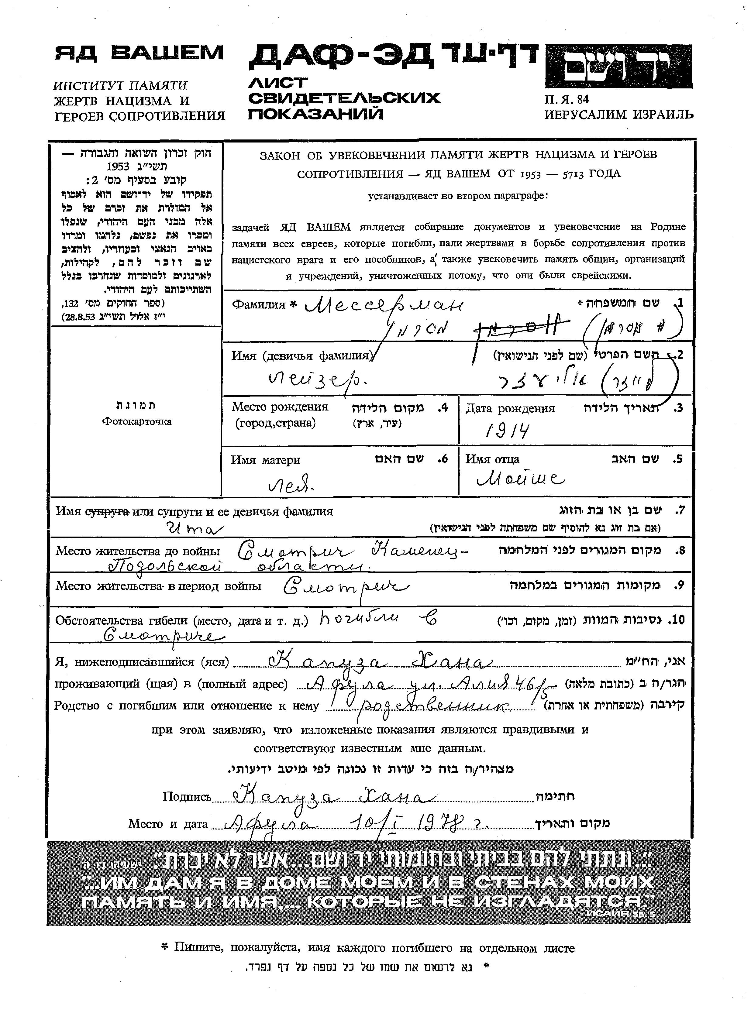 Recherche par nom du dépositeur de la Feuille de témoignage. Cette recherché indique aussi les noms de jeunes filles.