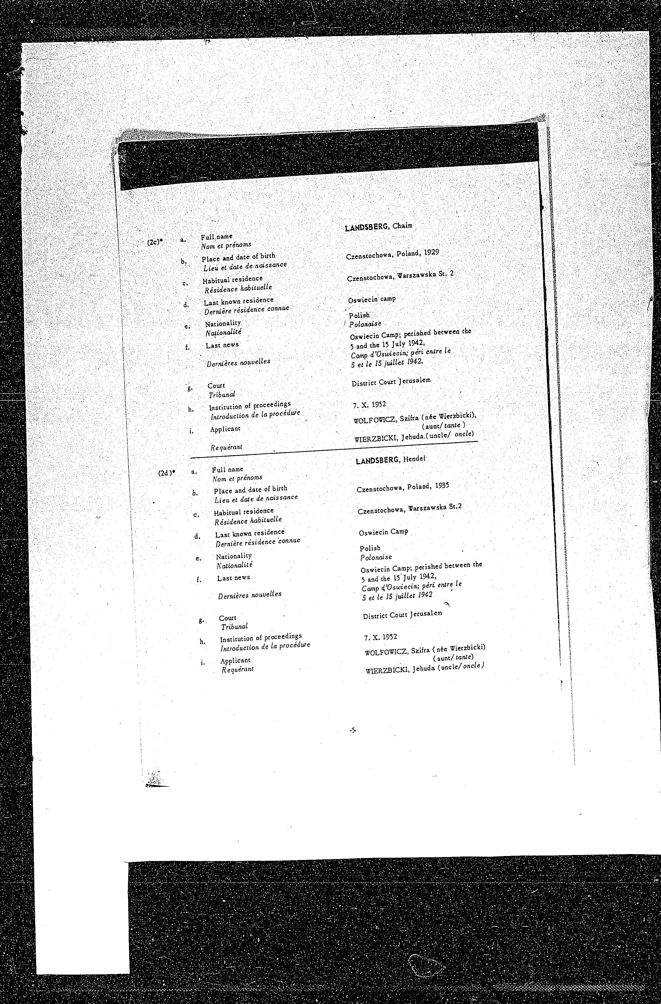 Landsberg Chaim 1929 Czenstochowa, Pologne Liste de personnes persécutées