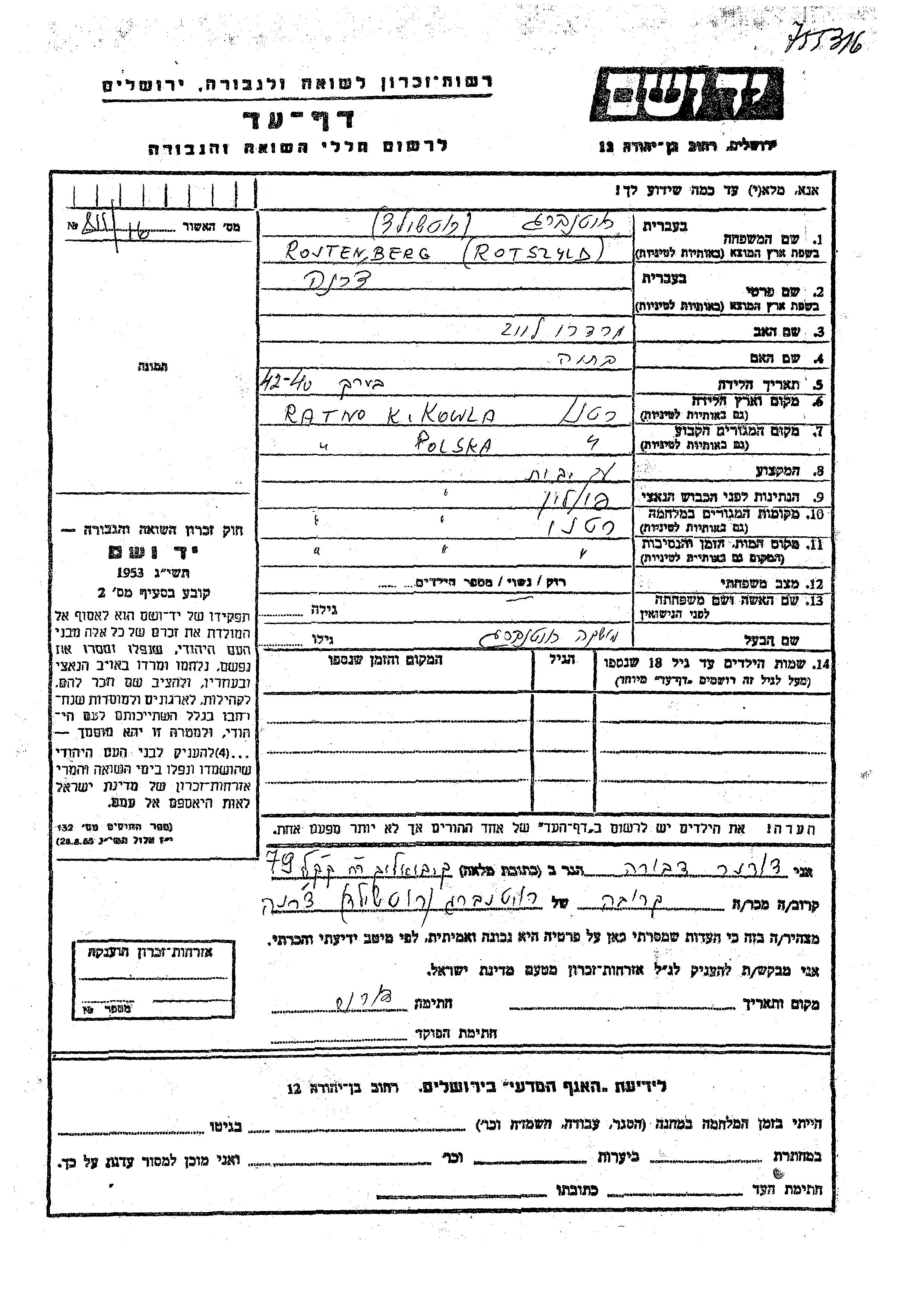 Rojtenberg Charna Ratno, Pologne Feuille de témoignage