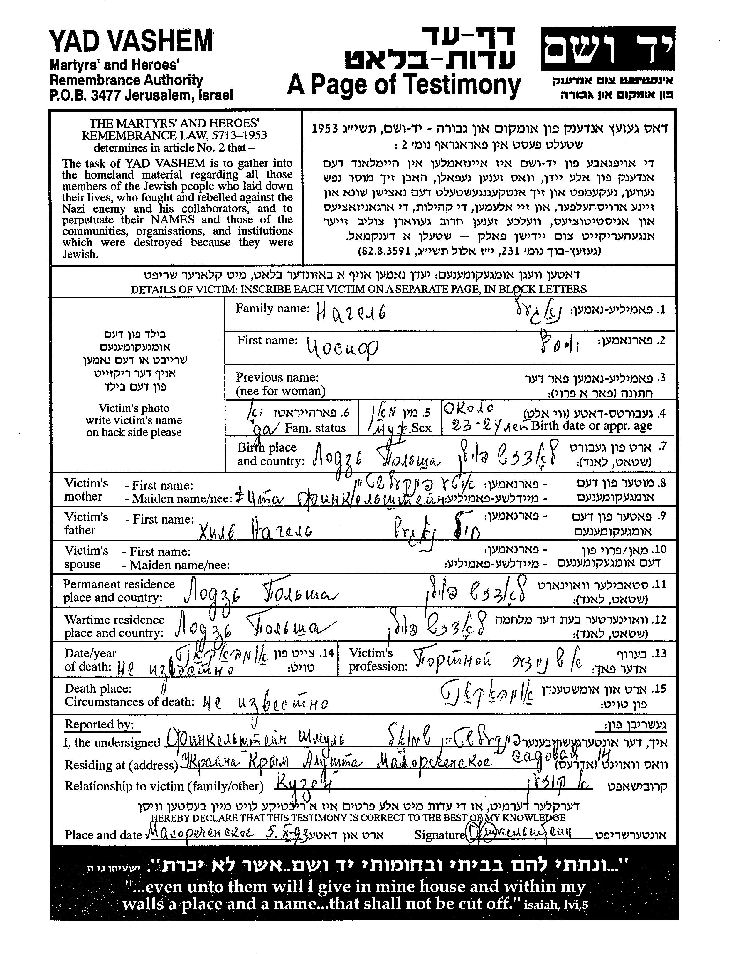 Yad Vashem - Pages of Testimony Names Memorial Collection