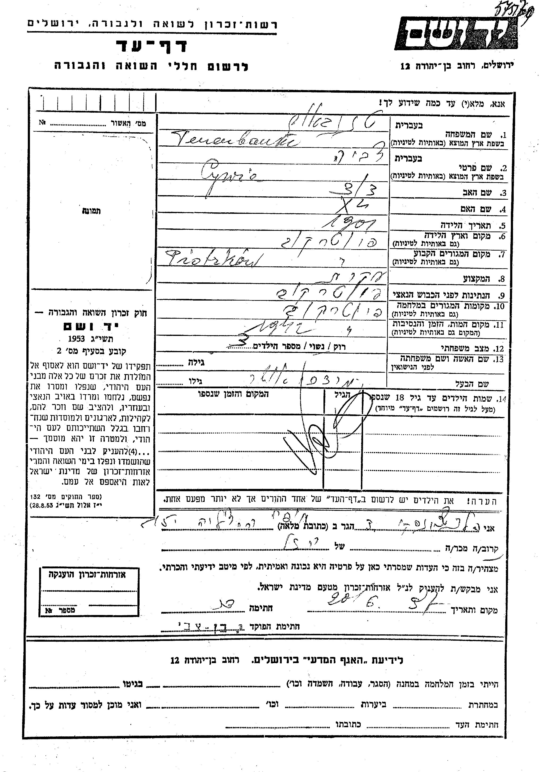 Yad Vashem - Pages of Testimony Names Memorial Collection