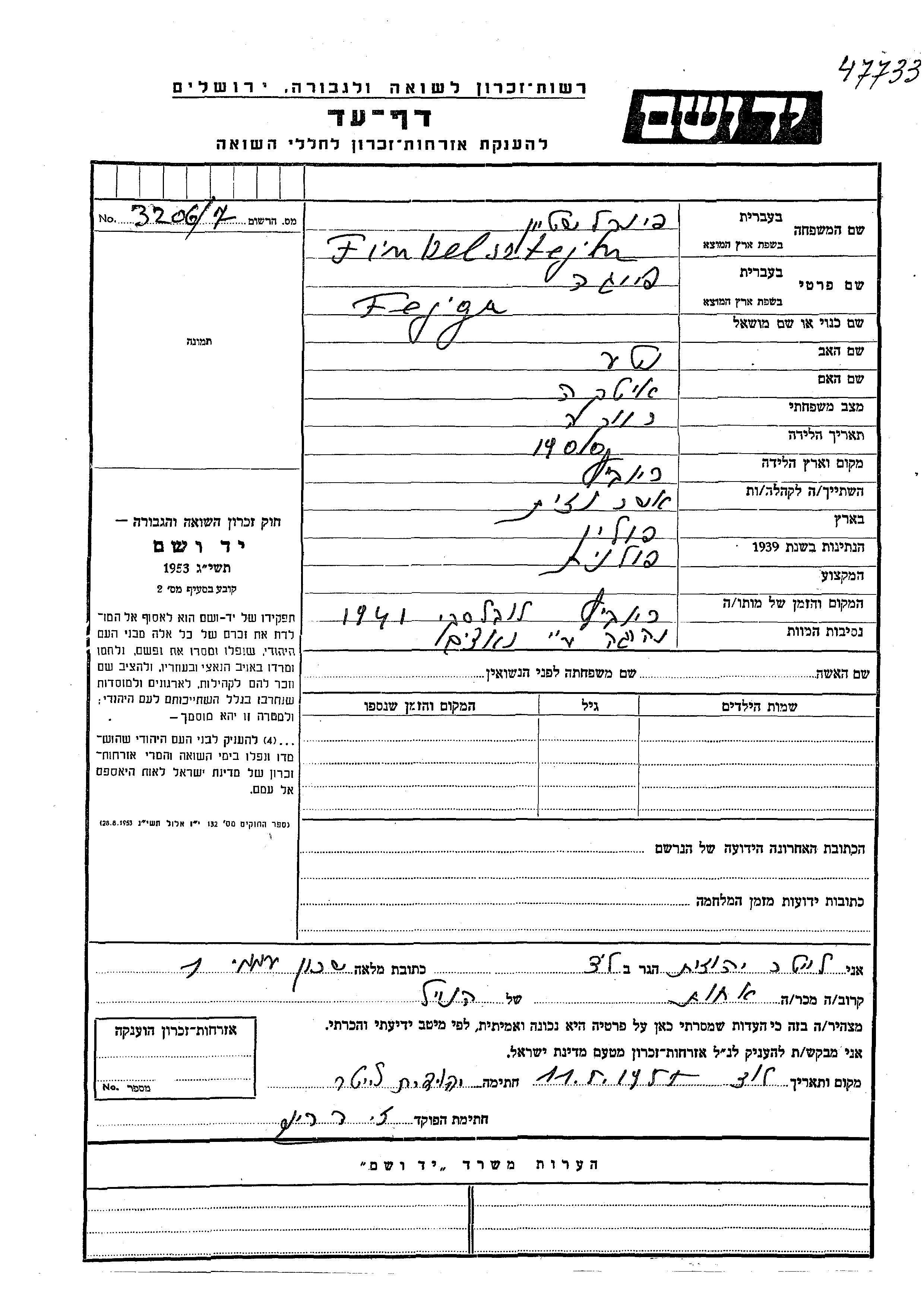 Yad Vashem - Pages of Testimony Names Memorial Collection