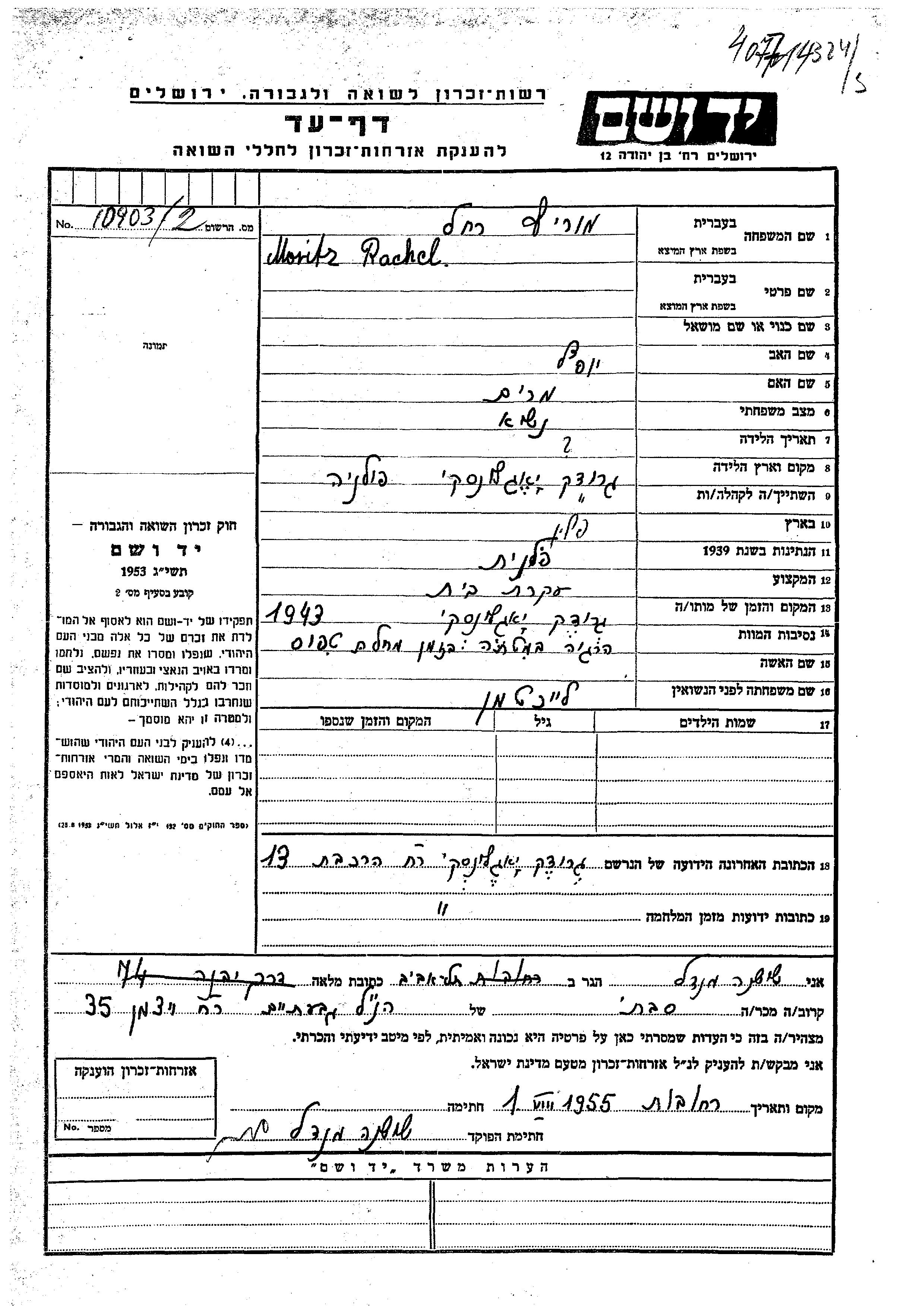 Moritz Rachel Grodek Jagiellonski, Pologne Feuille de témoignage
