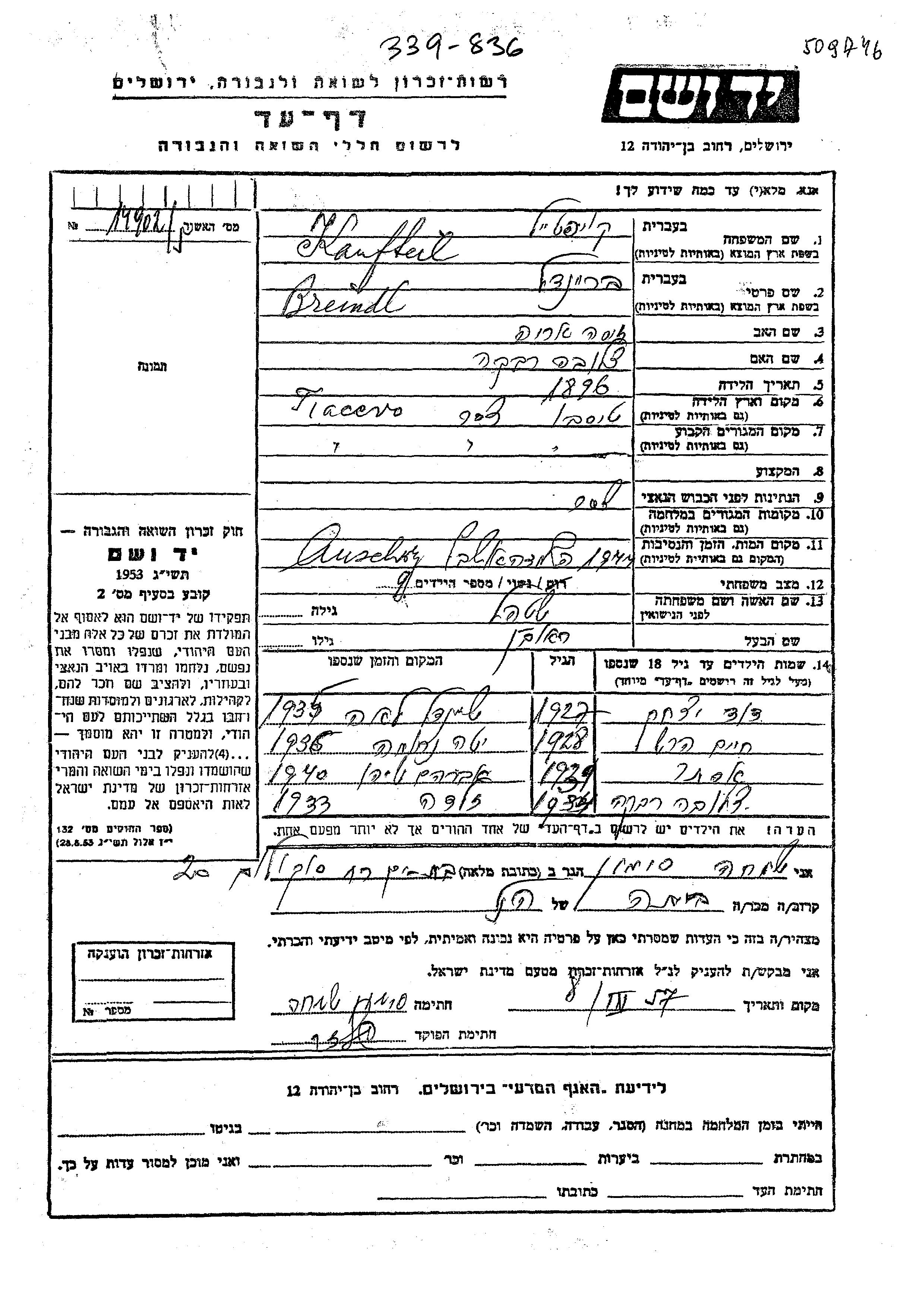 Yad Vashem - Pages of Testimony Names Memorial Collection
