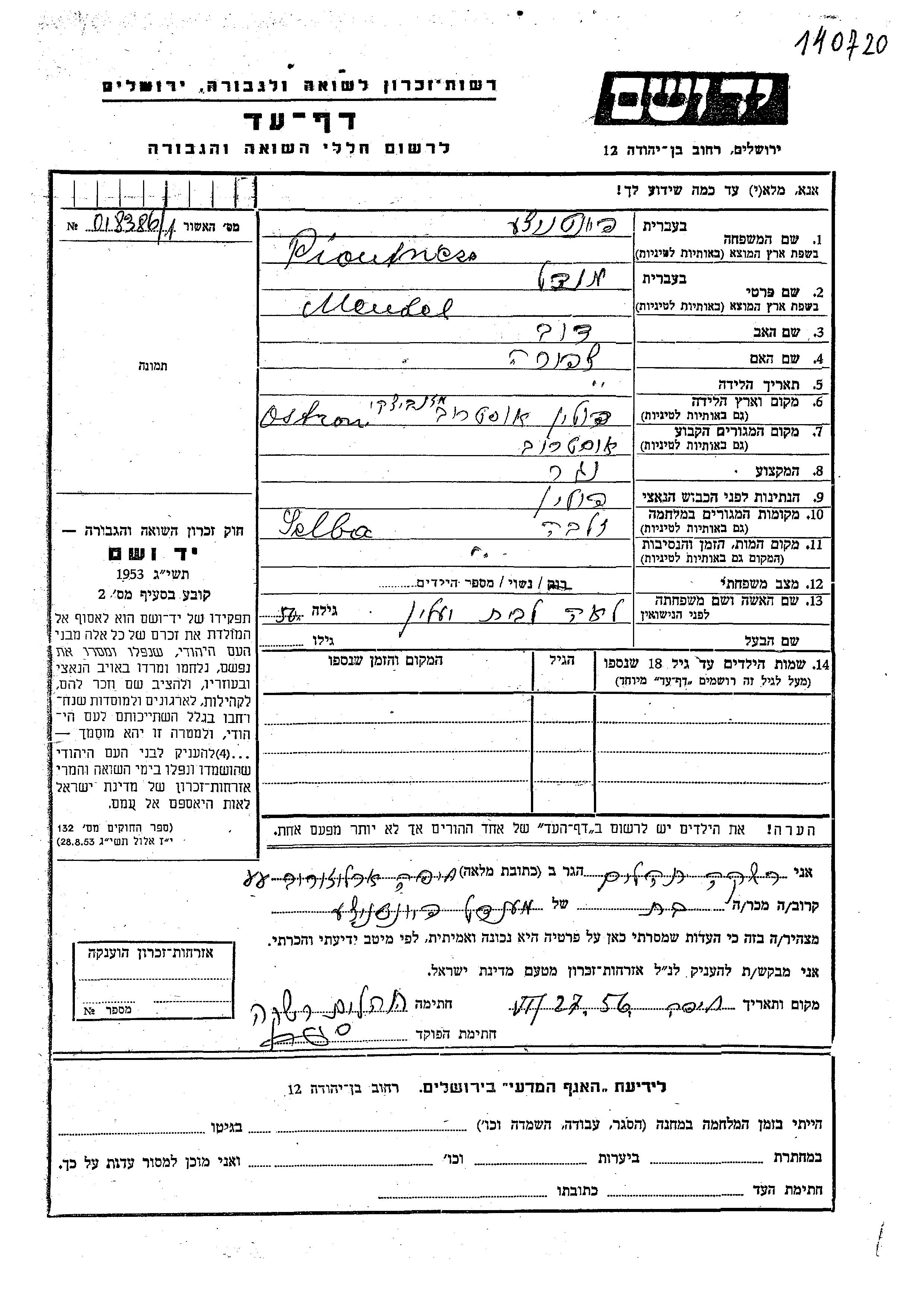 Yad Vashem - Pages of Testimony Names Memorial Collection