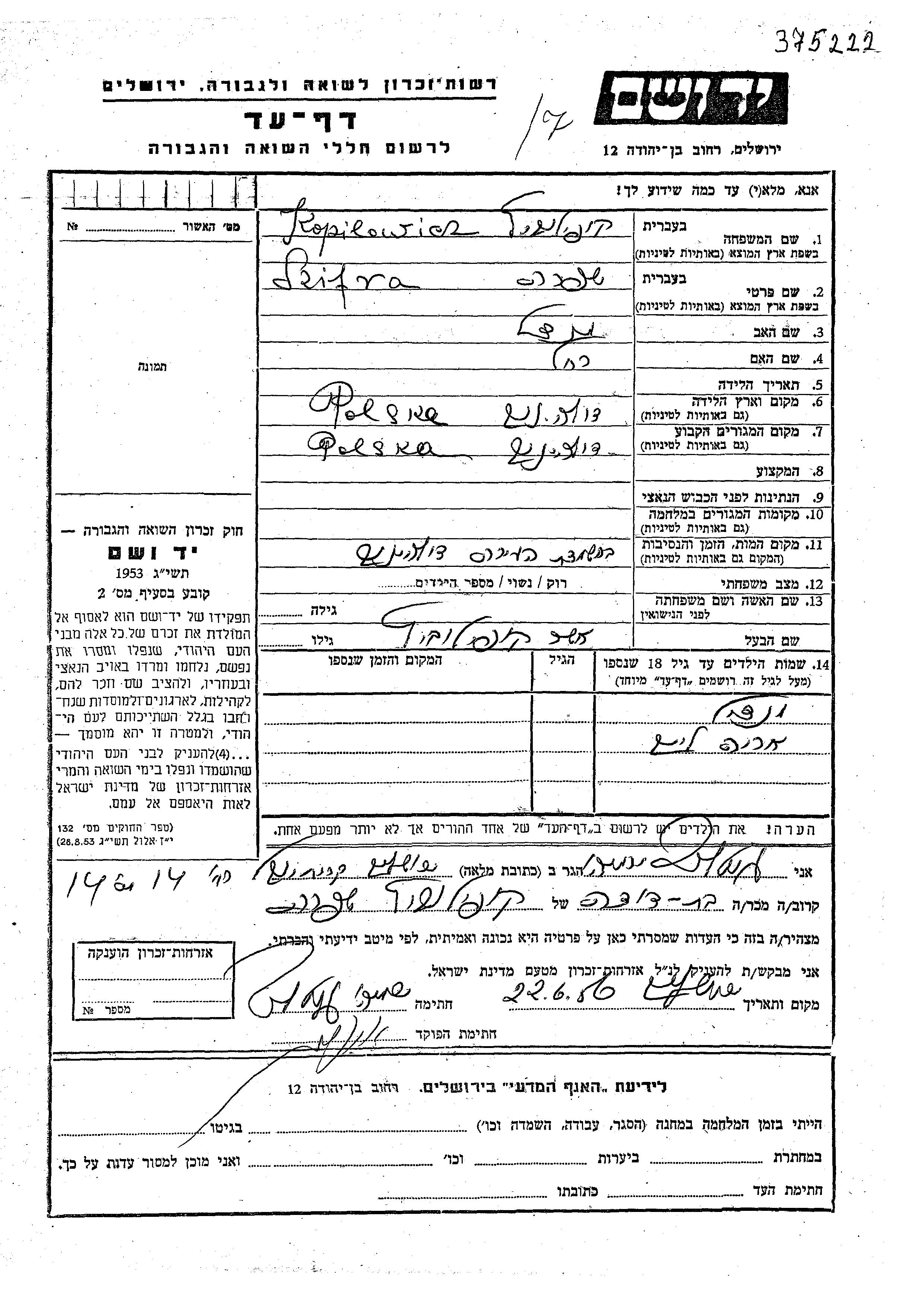 Yad Vashem - Pages of Testimony Names Memorial Collection