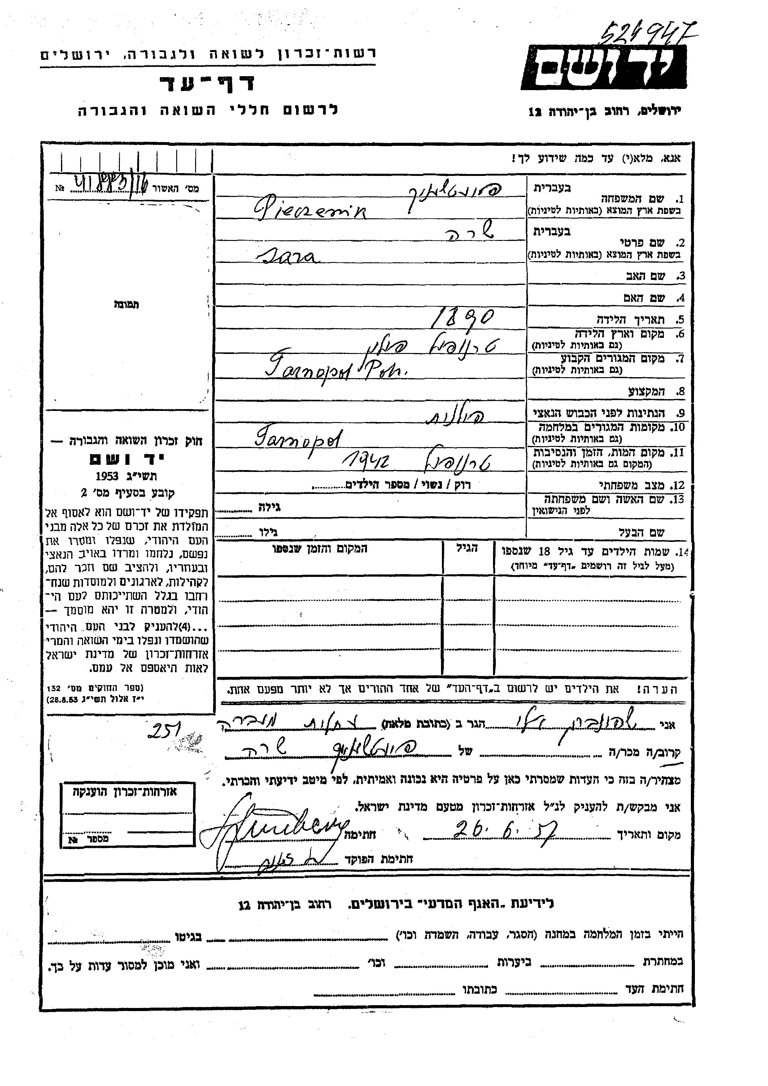 Yad Vashem - Pages of Testimony Names Memorial Collection
