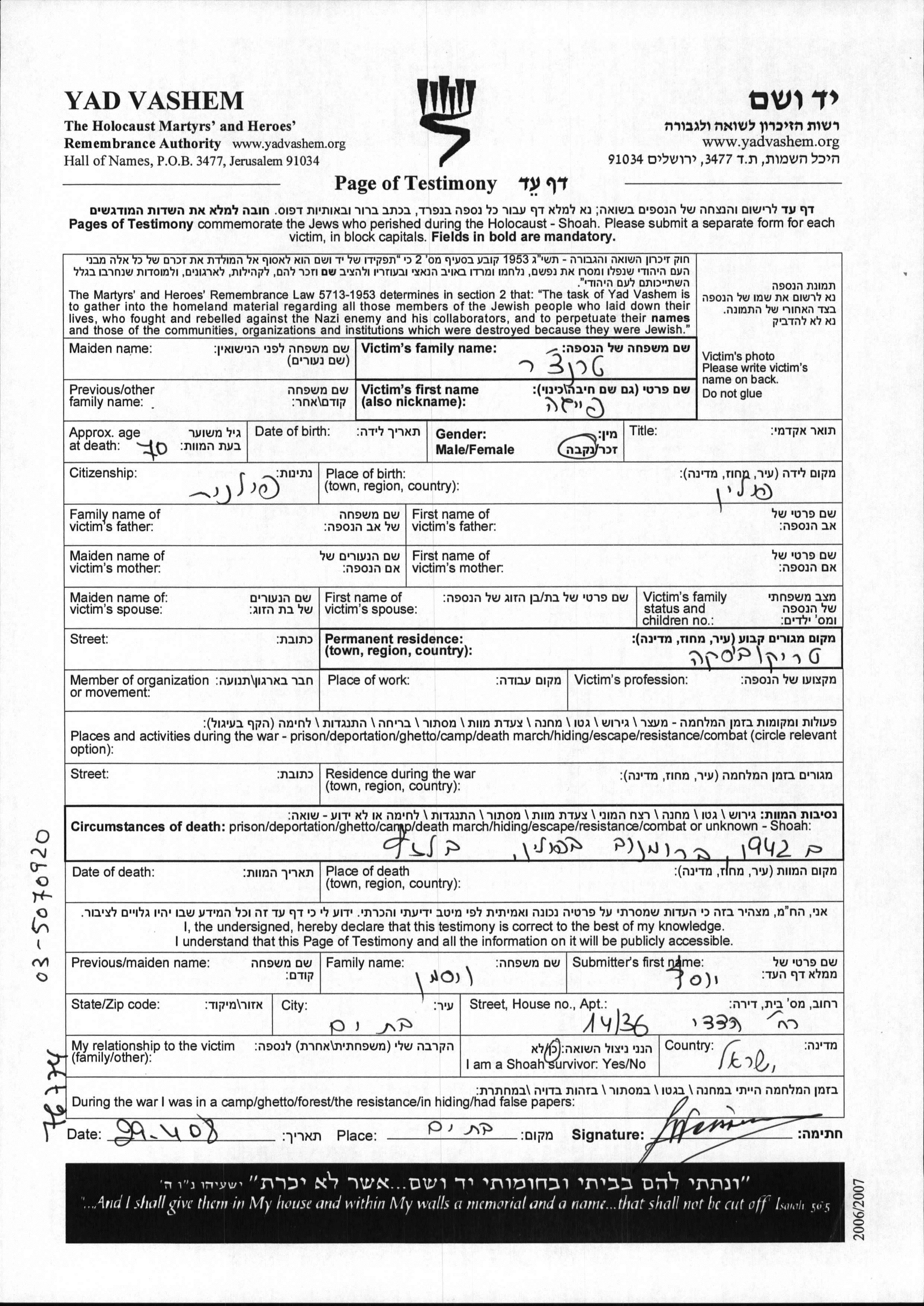 Yad Vashem - Pages of Testimony Names Memorial Collection