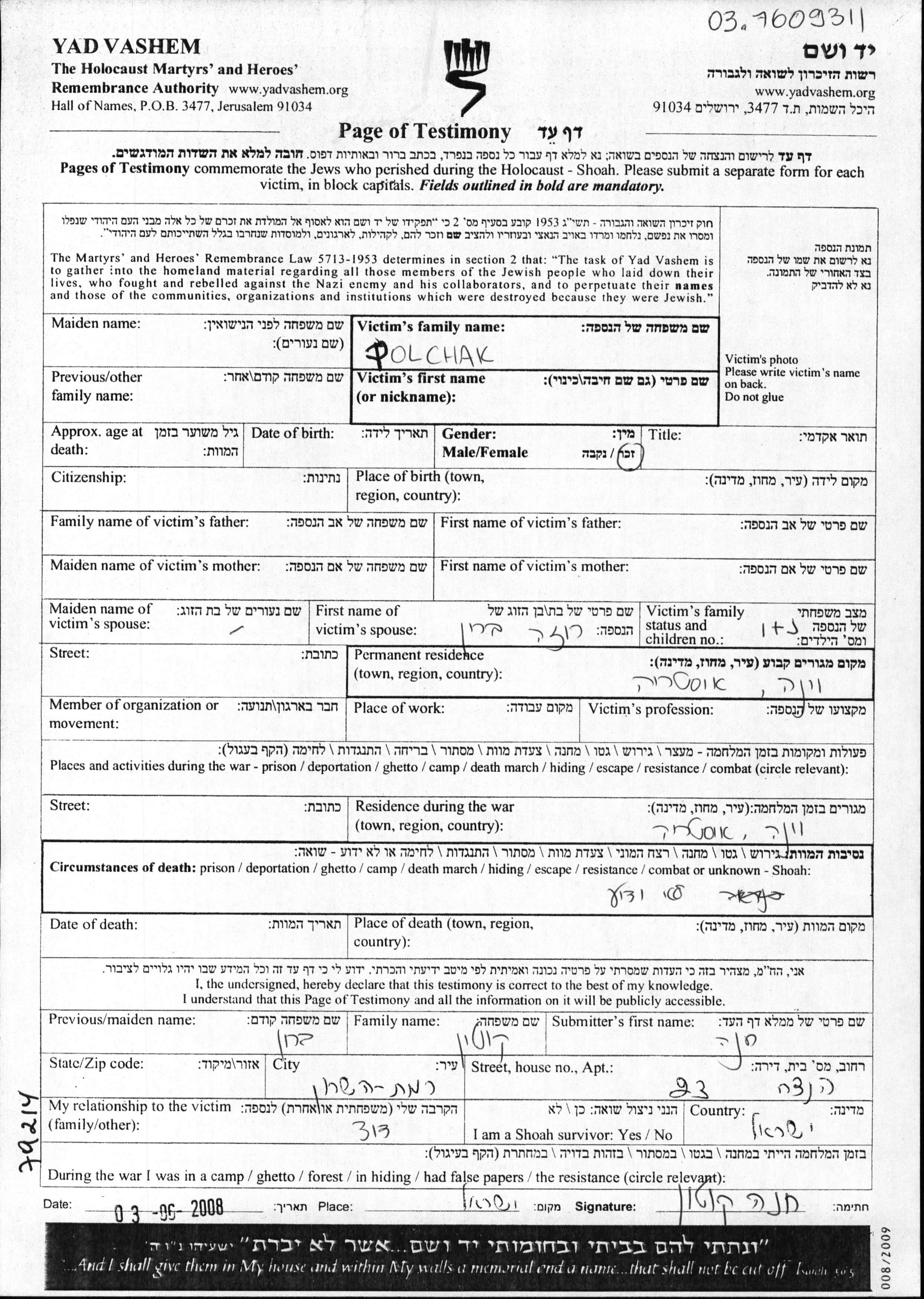 Yad Vashem - Pages of Testimony Names Memorial Collection