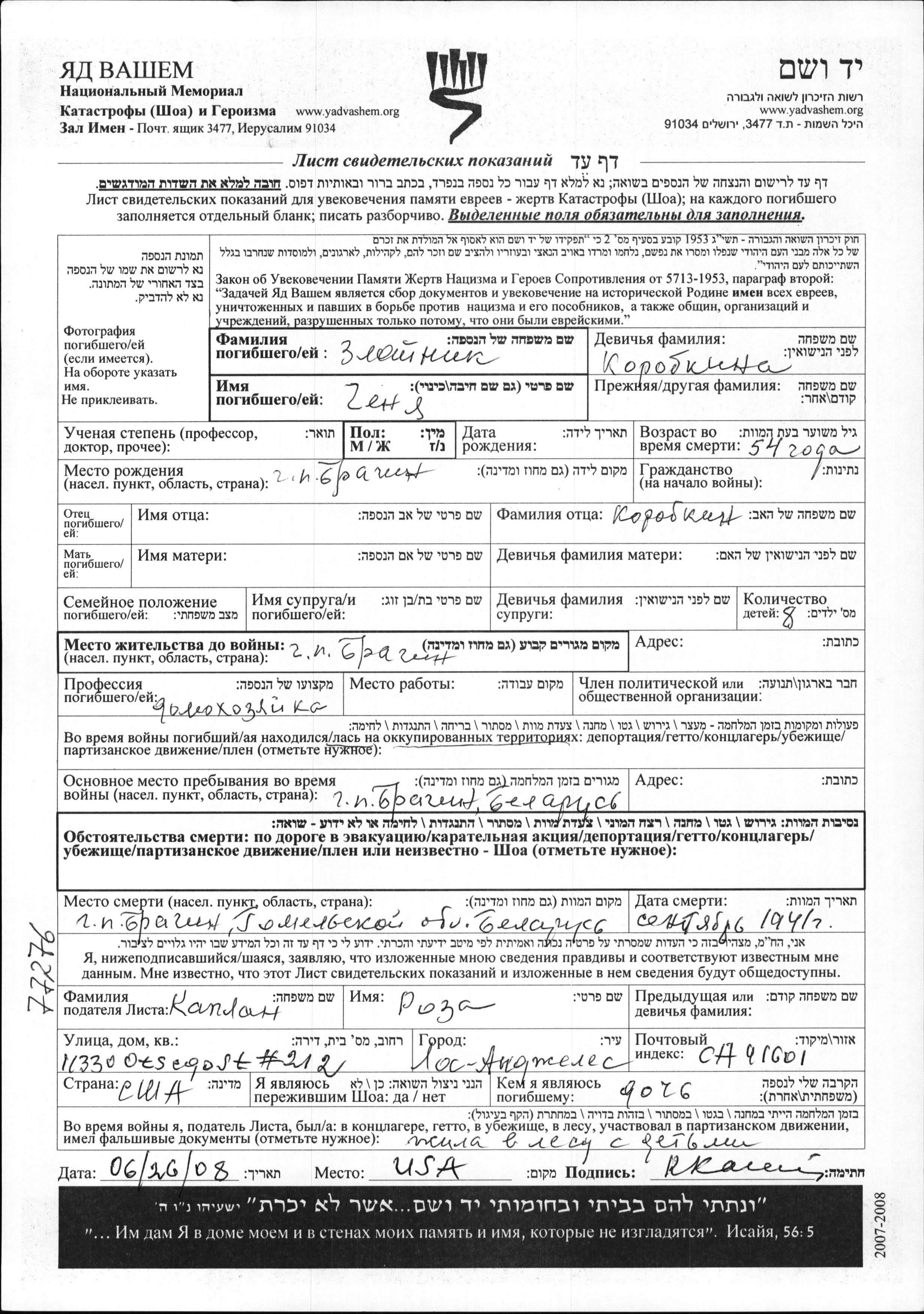 Yad Vashem - Pages of Testimony Names Memorial Collection