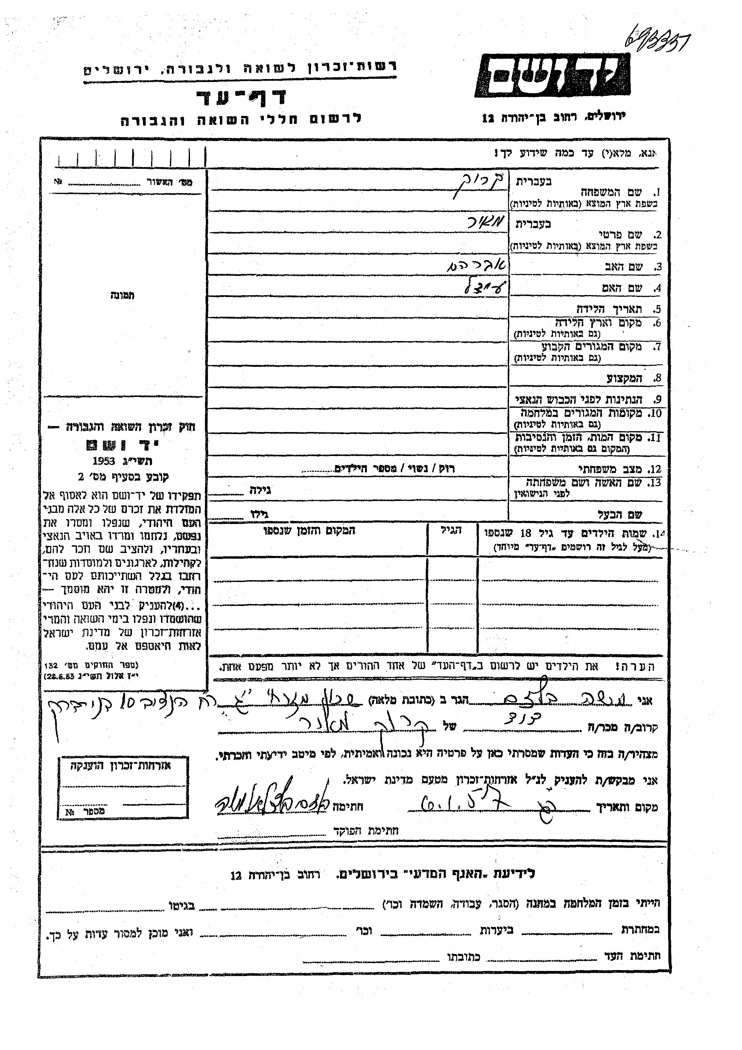Yad Vashem - Pages of Testimony Names Memorial Collection