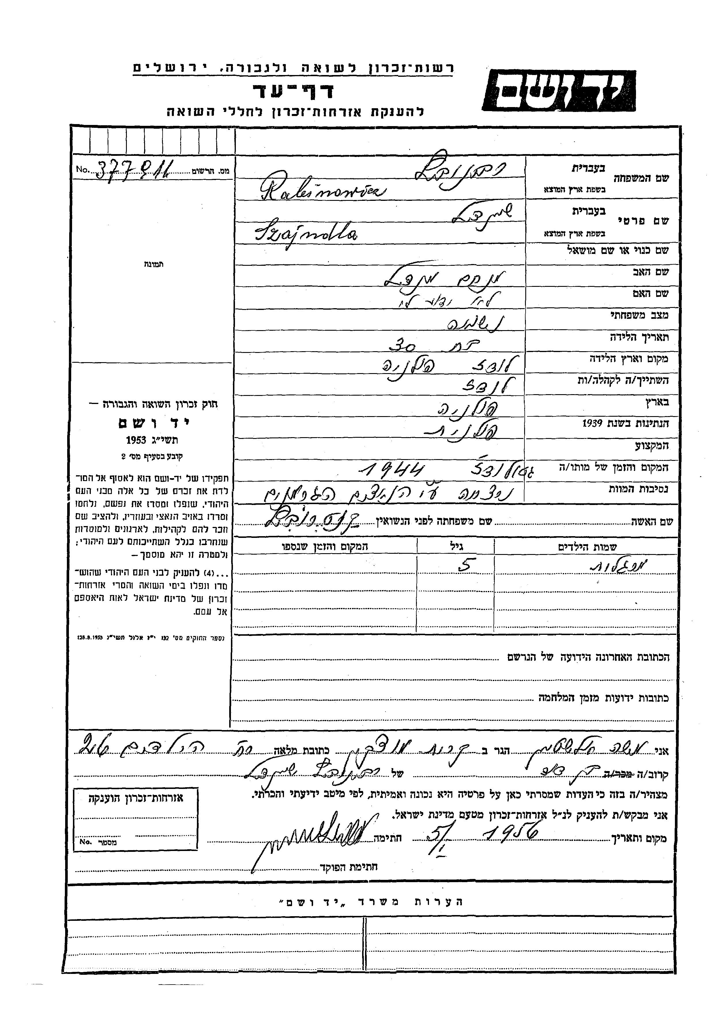Yad Vashem - Pages of Testimony Names Memorial Collection