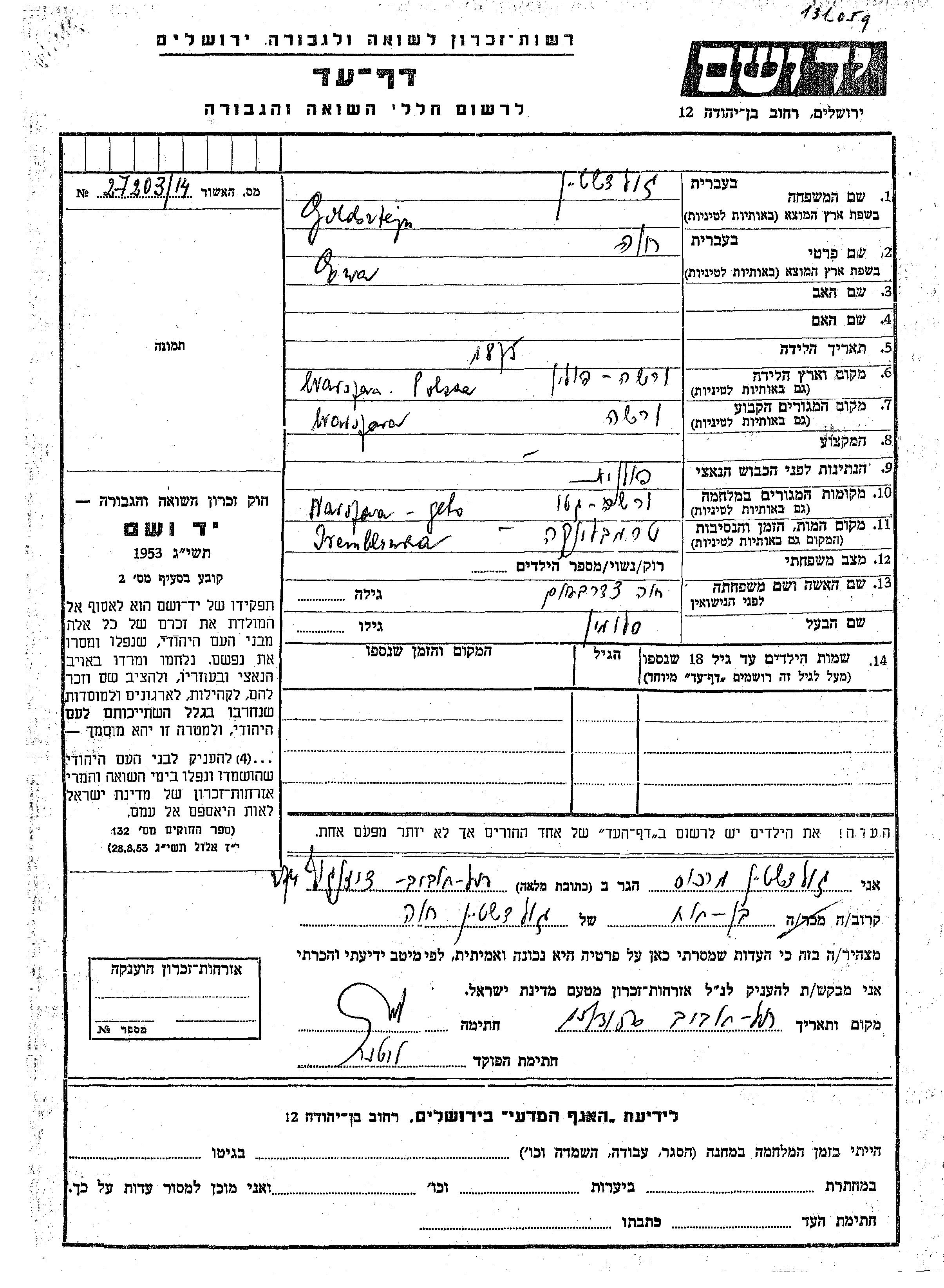 Yad Vashem - Pages of Testimony Names Memorial Collection