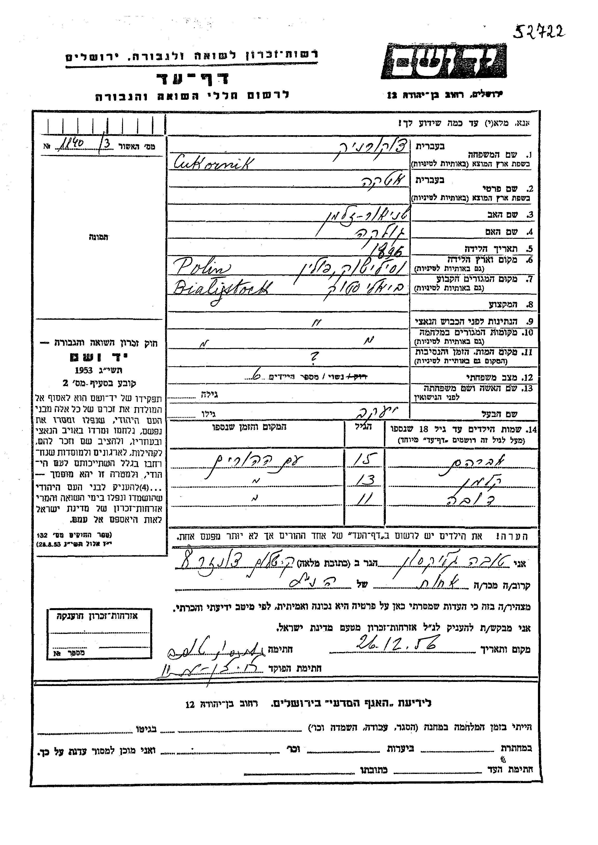 Yad Vashem - Pages of Testimony Names Memorial Collection