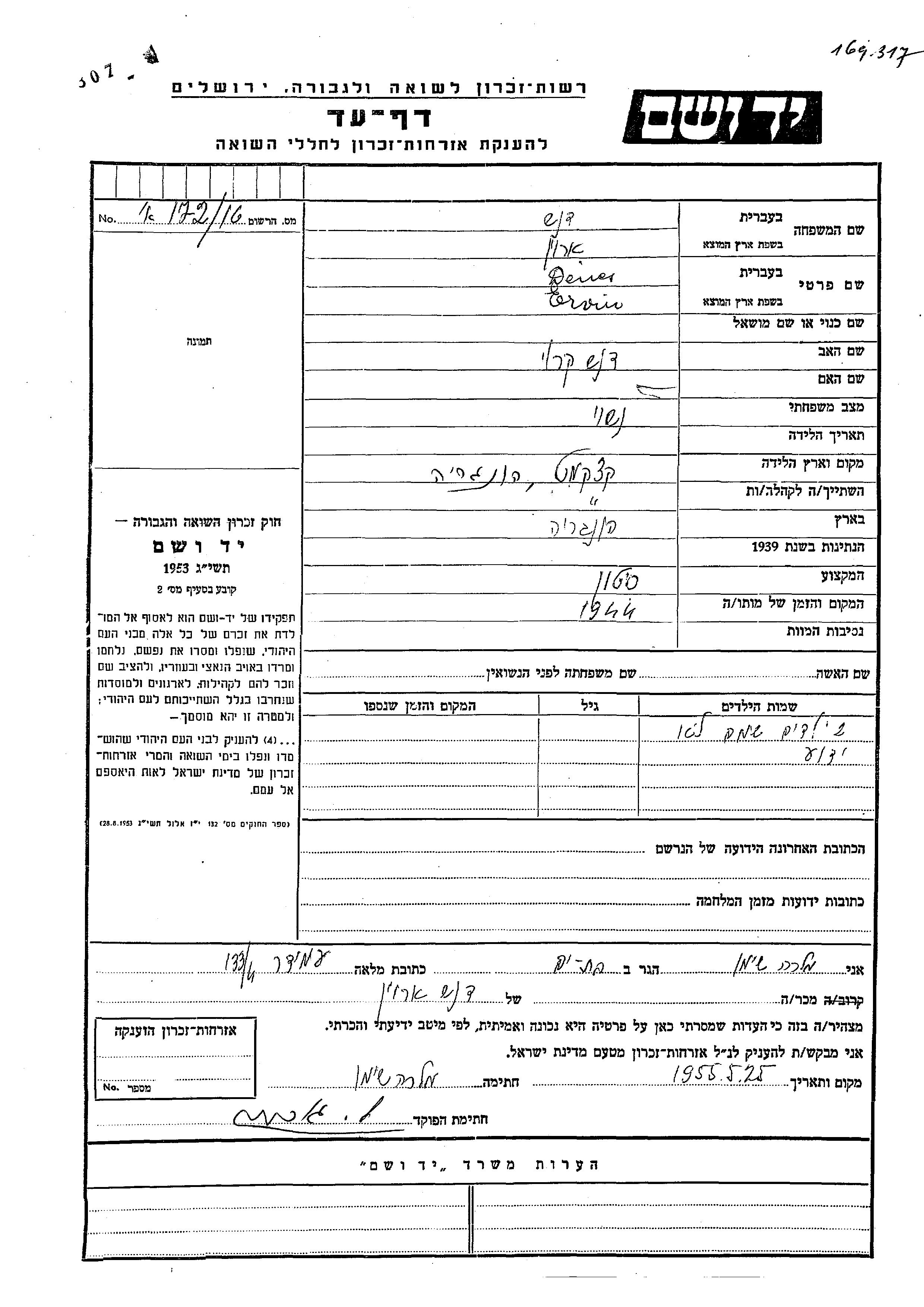 Yad Vashem - Pages of Testimony Names Memorial Collection