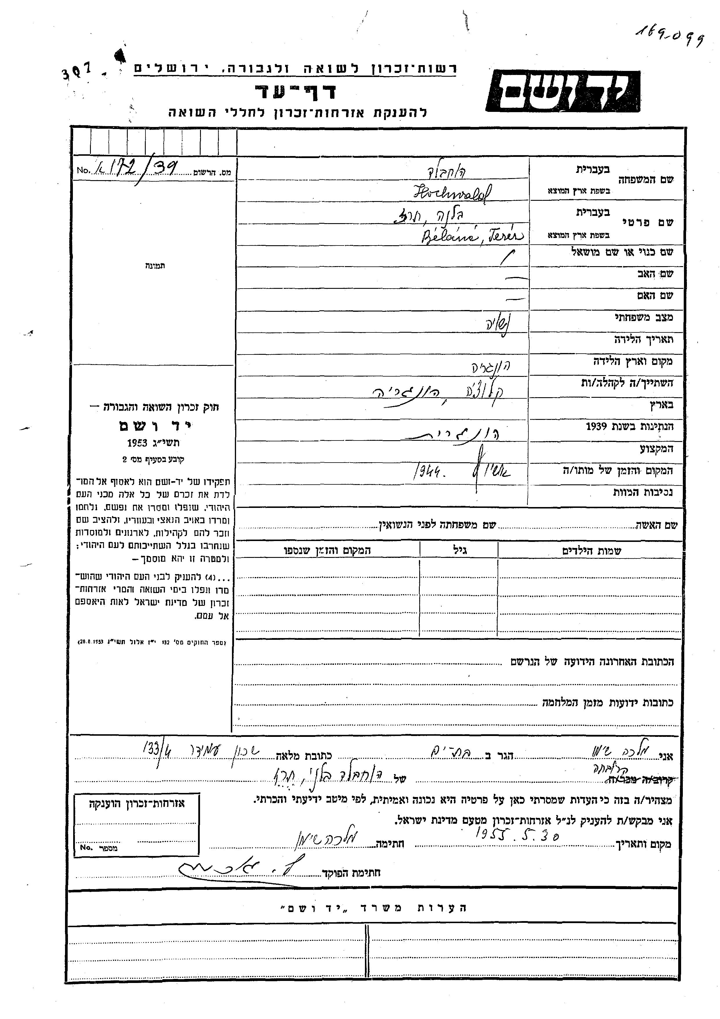 Yad Vashem - Pages of Testimony Names Memorial Collection