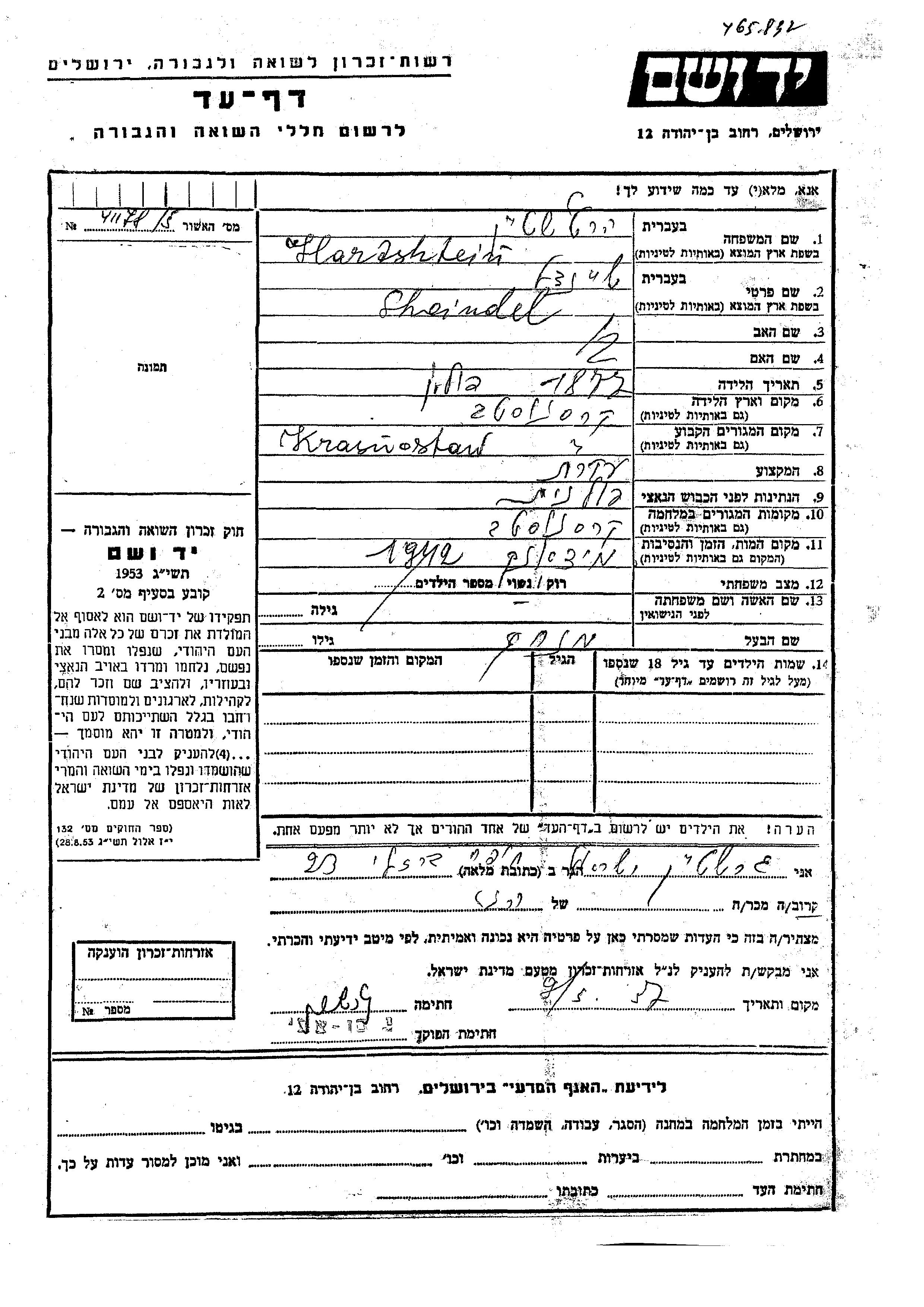 Yad Vashem - Pages of Testimony Names Memorial Collection
