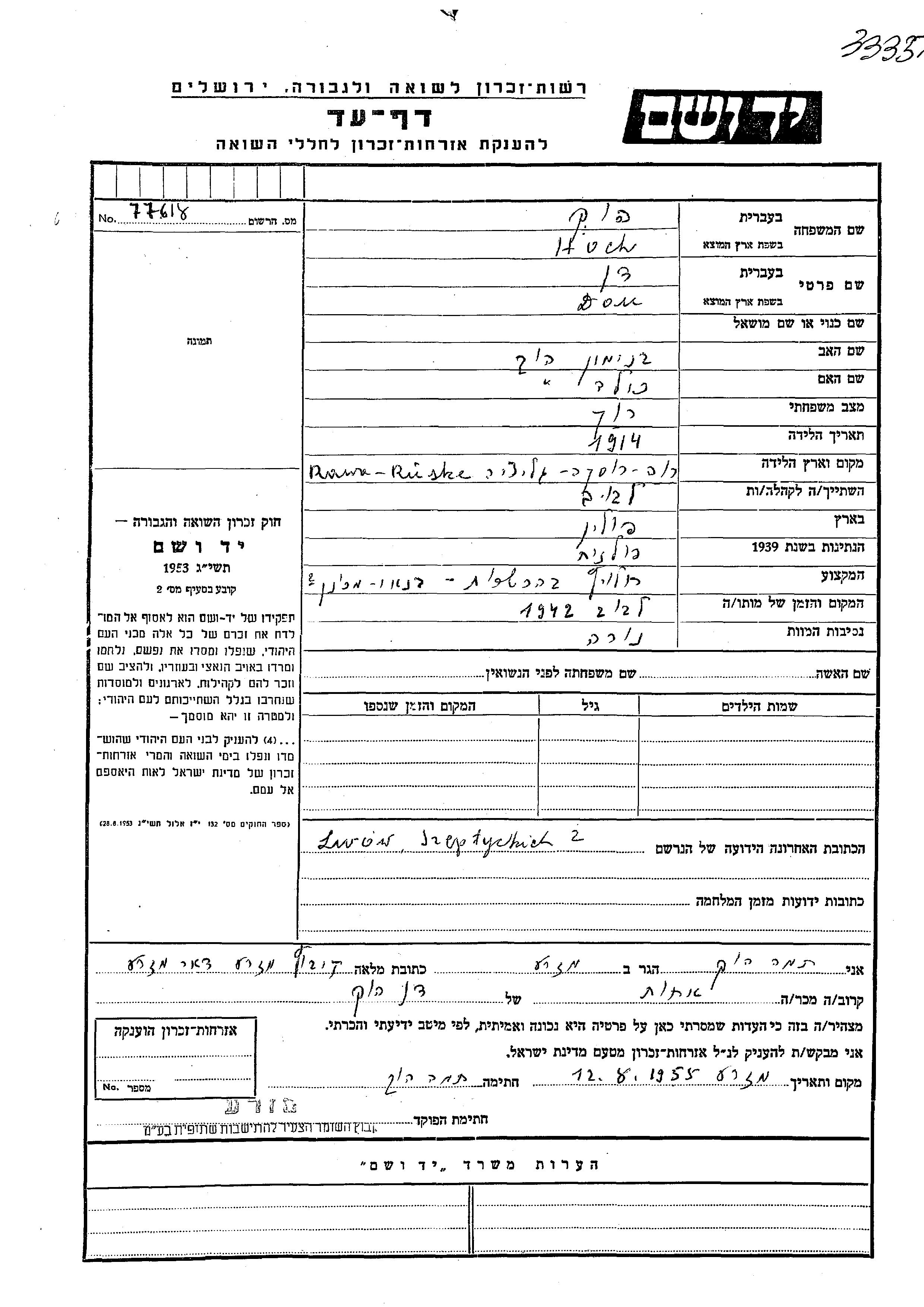 Yad Vashem - Pages of Testimony Names Memorial Collection