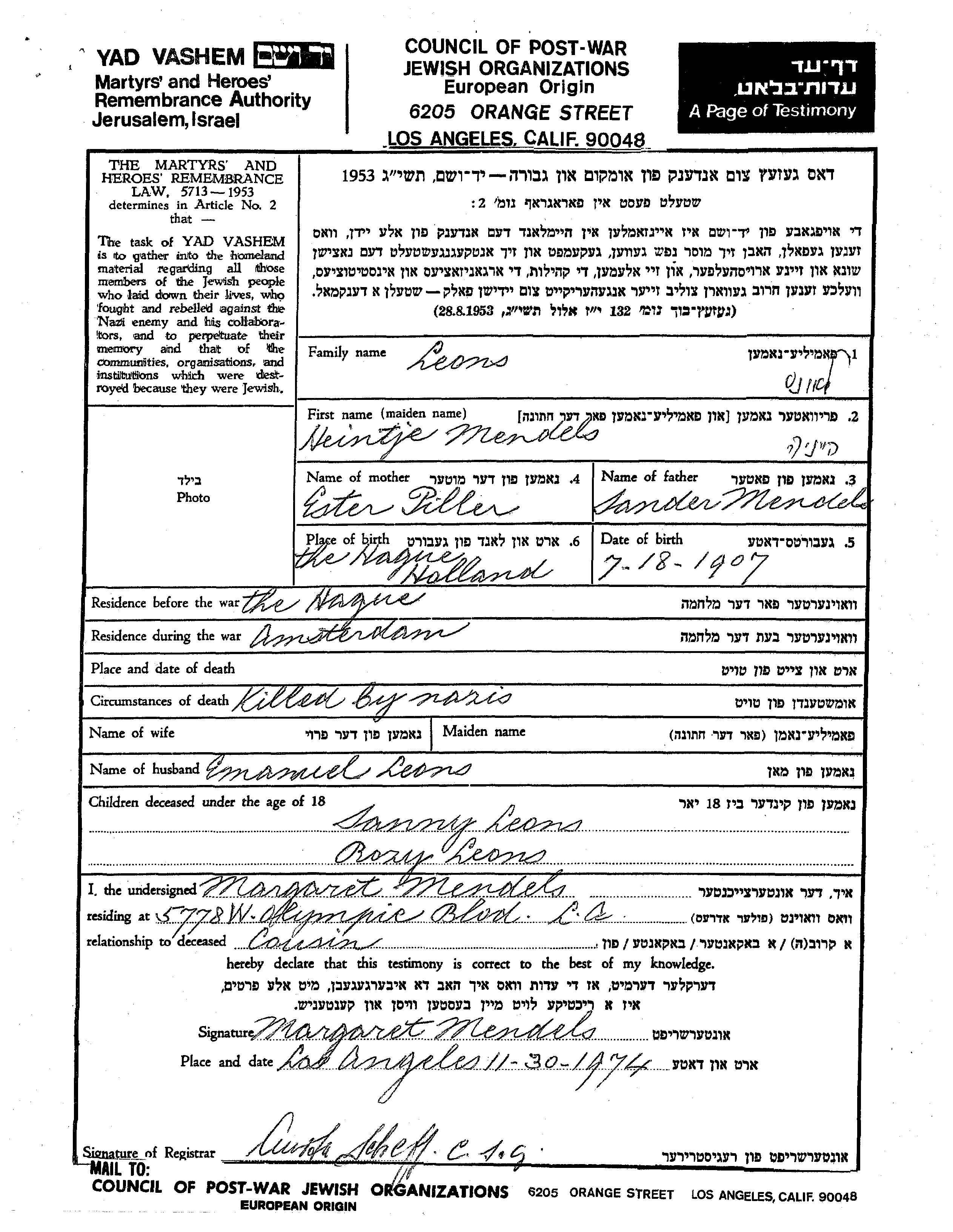 Recherche par nom du dépositeur de la Feuille de témoignage. Cette recherché indique aussi les noms de jeunes filles.