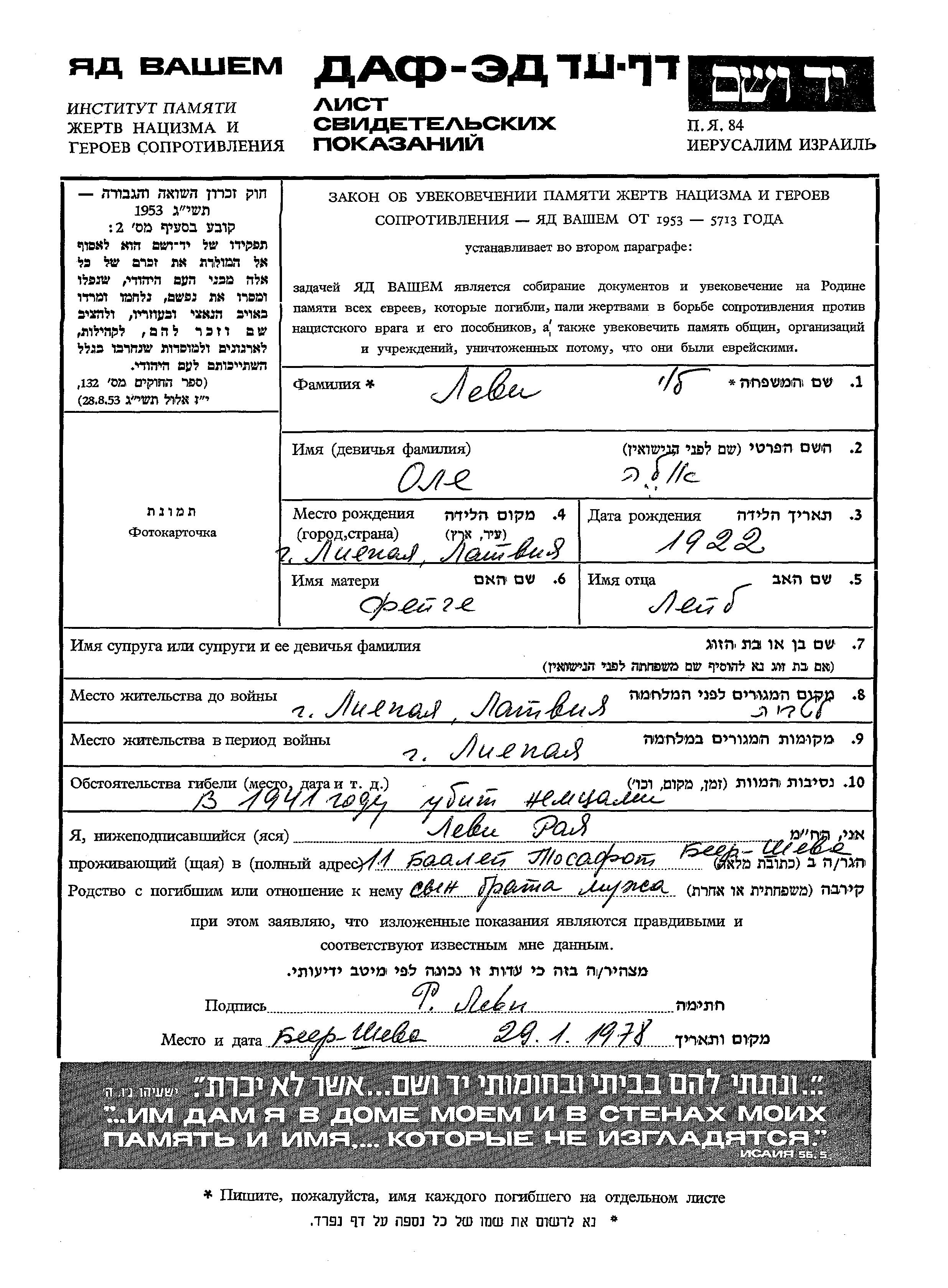 Yad Vashem - Pages of Testimony Names Memorial Collection